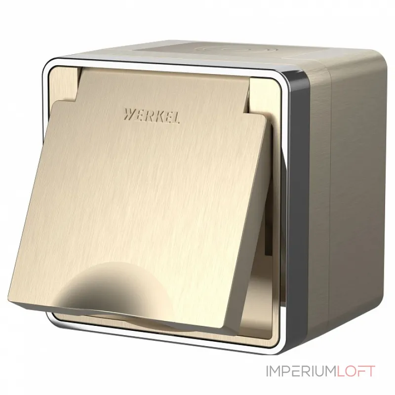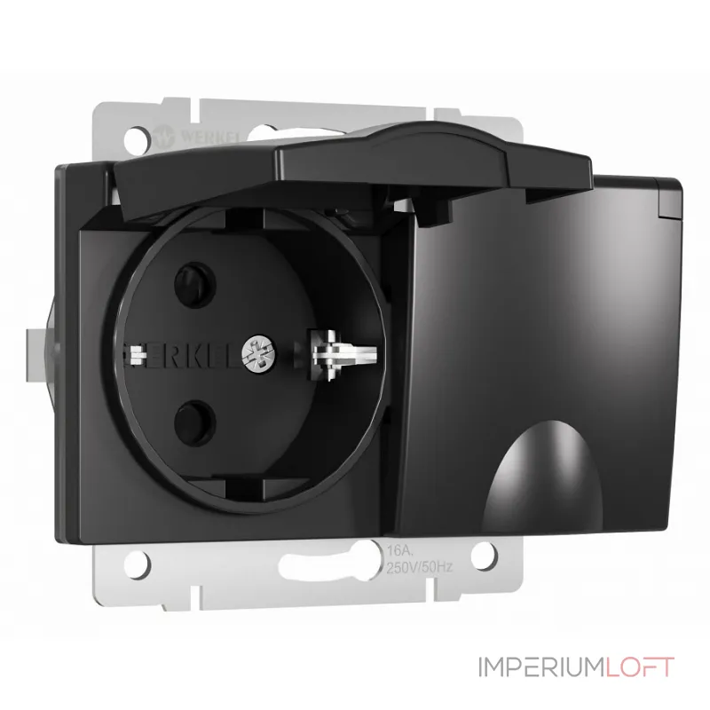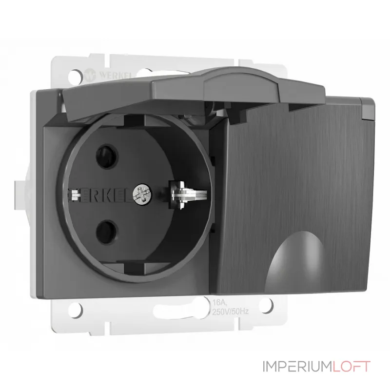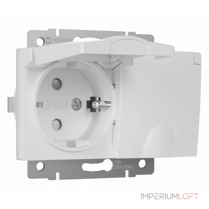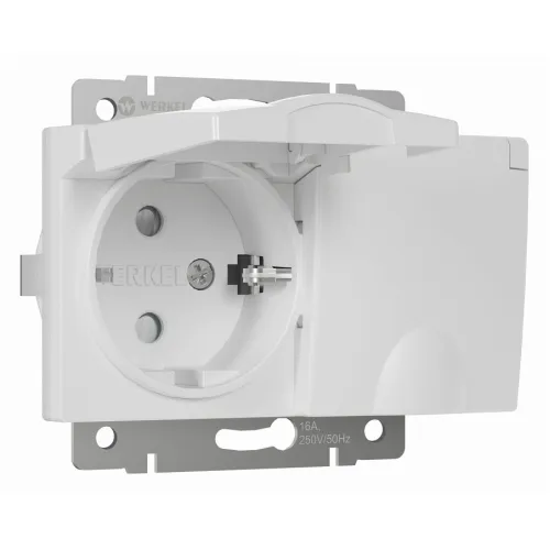 Розетка влагозащищенная с заземлением и шторками, без рамки с крышкой Werkel слоновая кость W1172203