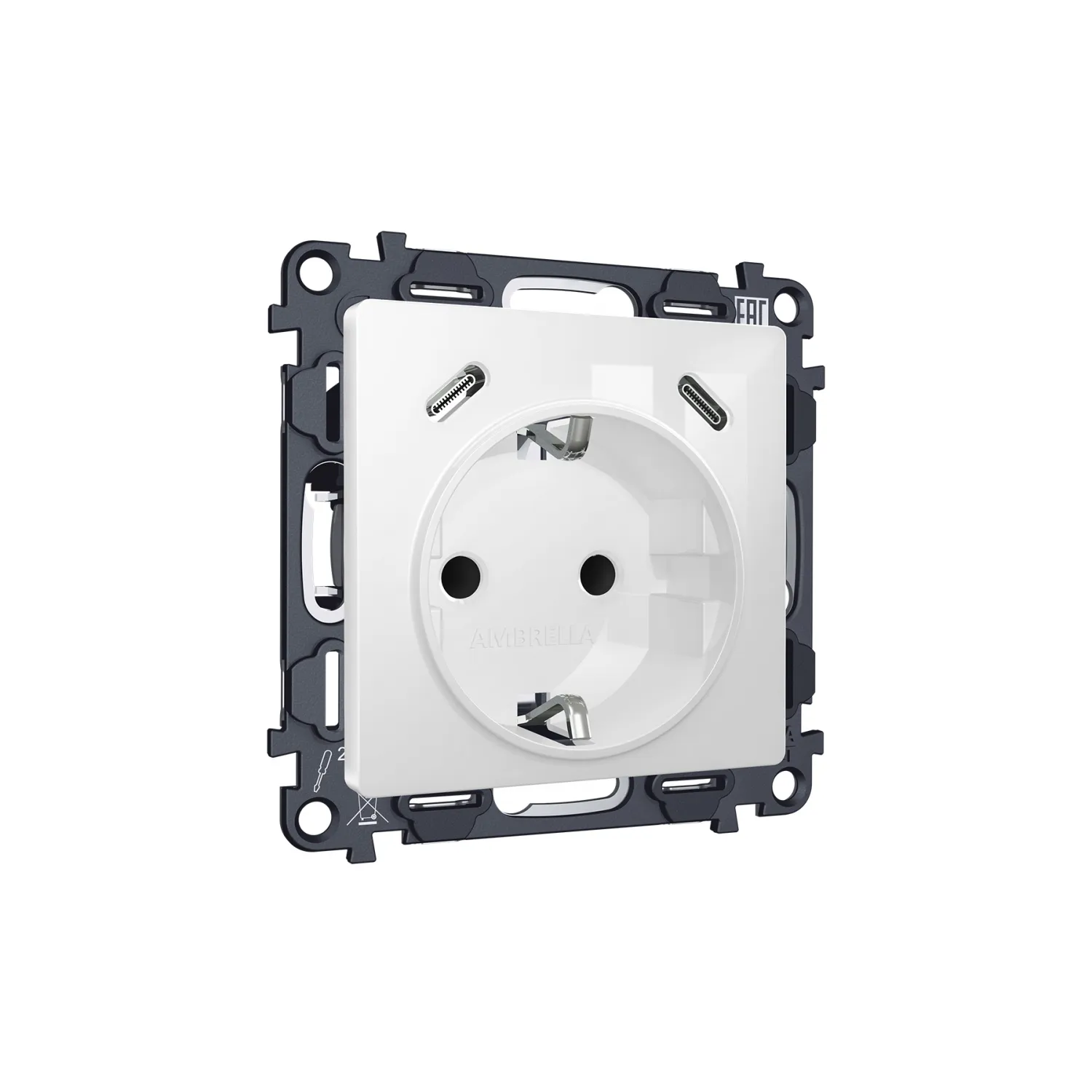 Магазин ImperiumLOFT представляет Вашему вниманию Комплект механизма электрической розетки 2USB С+C 20W (быстрая зарядка) с/з на винтовых зажимах 16A-250V Ambrella Volt MA MA110510 от производителя - Ambrella Volt.