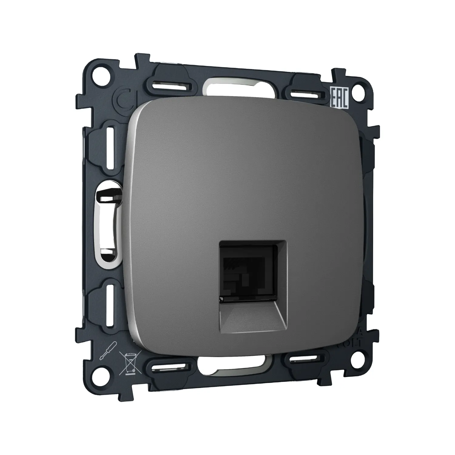 Магазин ImperiumLOFT представляет Вашему вниманию Комплект механизма компьютерной розетки RJ-45 (8P8C) CAT6A экранированной с автоматической защитной шторкой Ambrella Volt QUANT OMEGA MO662005 от производителя - Ambrella Volt.