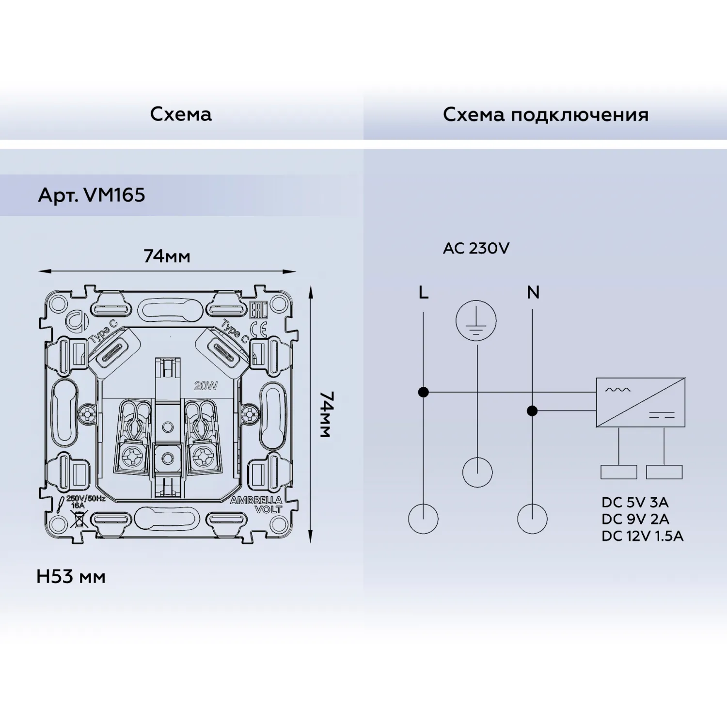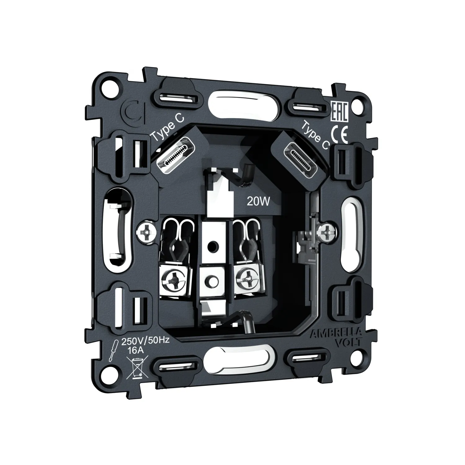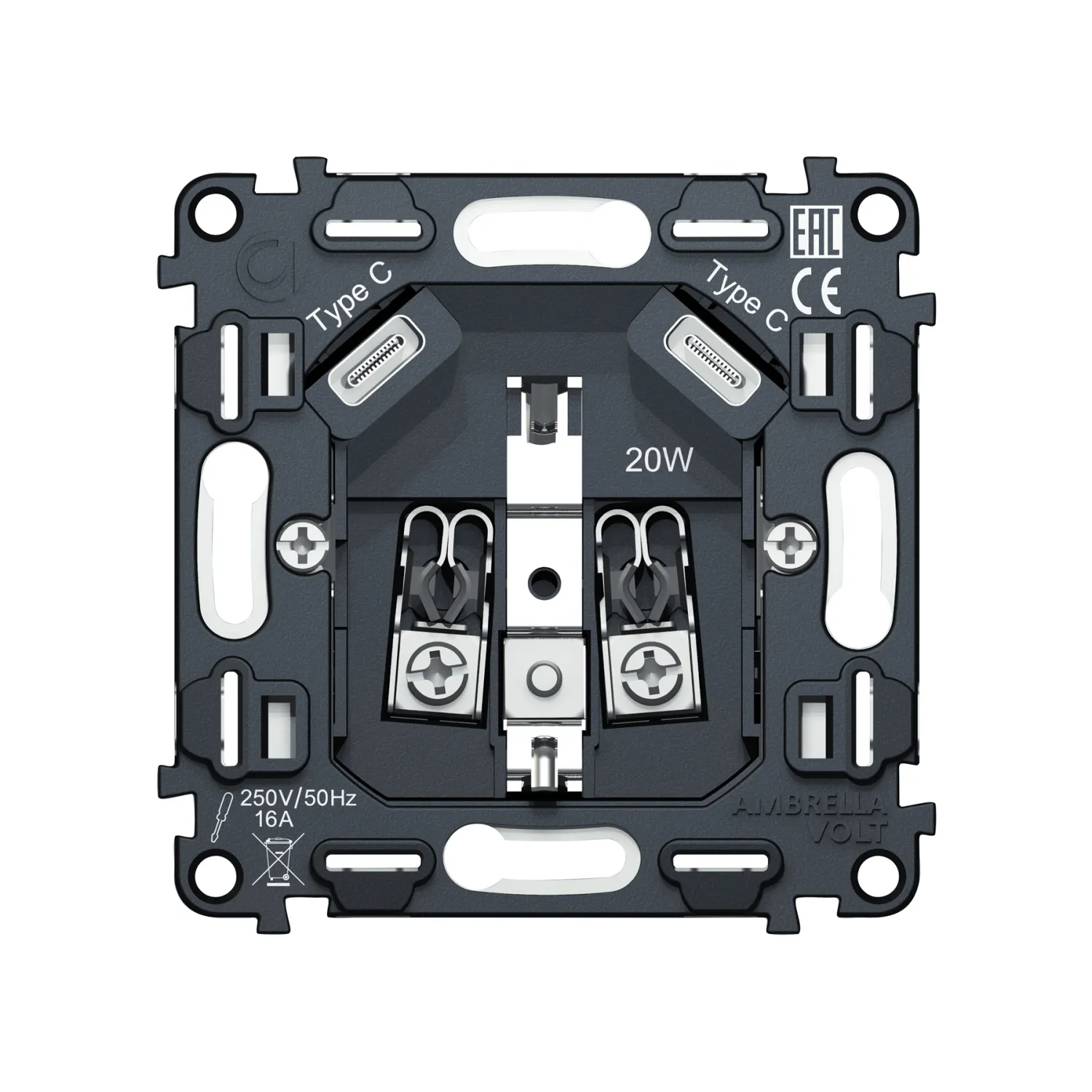 Магазин ImperiumLOFT представляет Вашему вниманию Механизм электрической розетки 2USB С+C 20W (быстрая зарядка) с/з на винтовых зажимах 16A-250V Volt QUANT VM165 от производителя - Volt.
