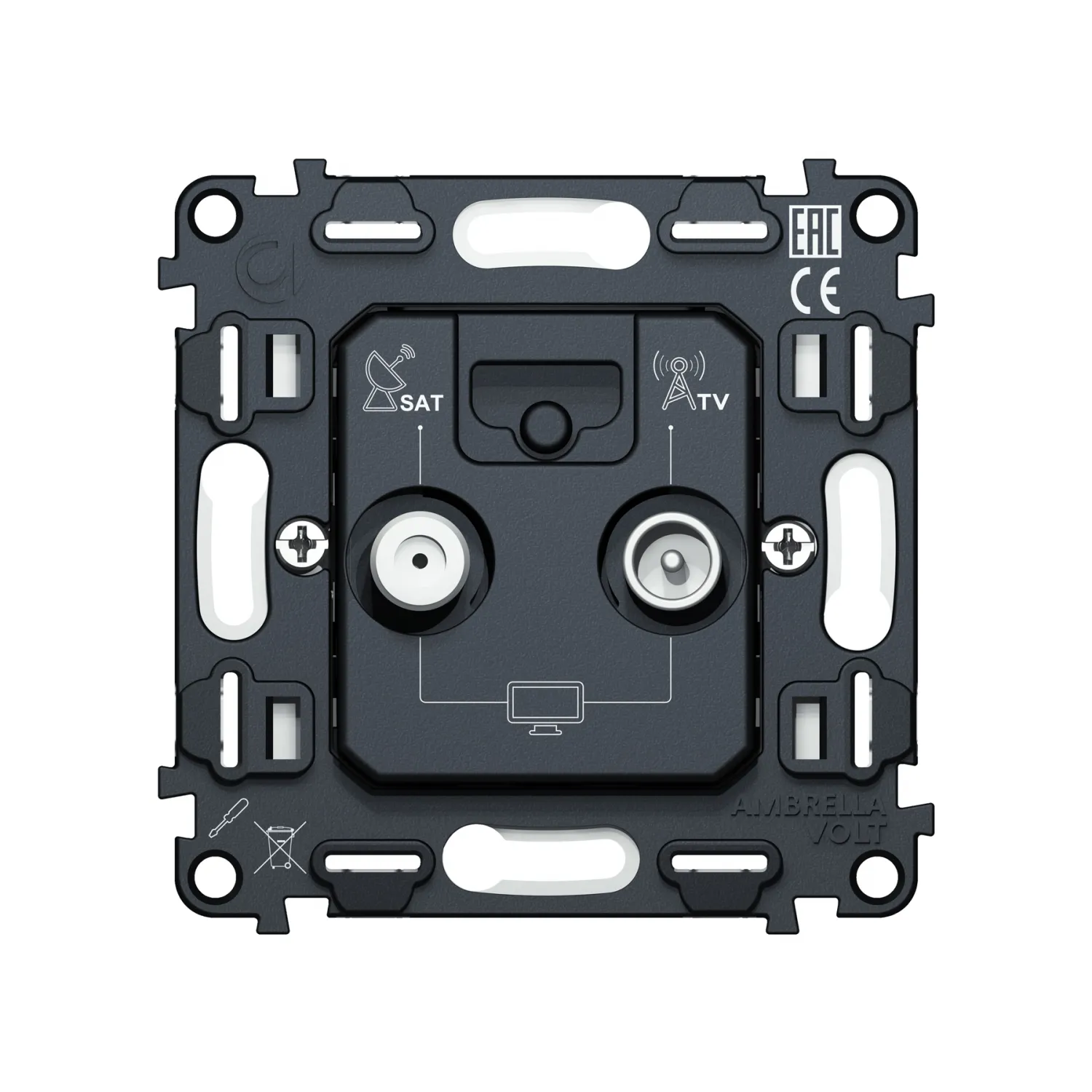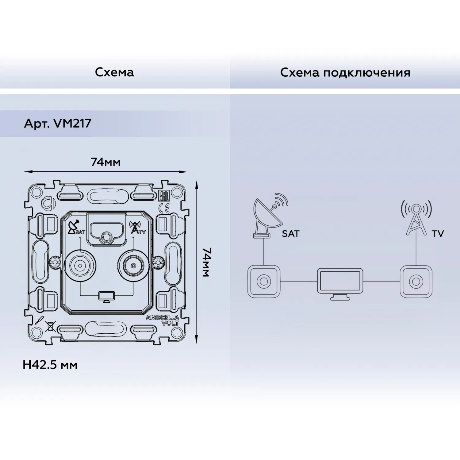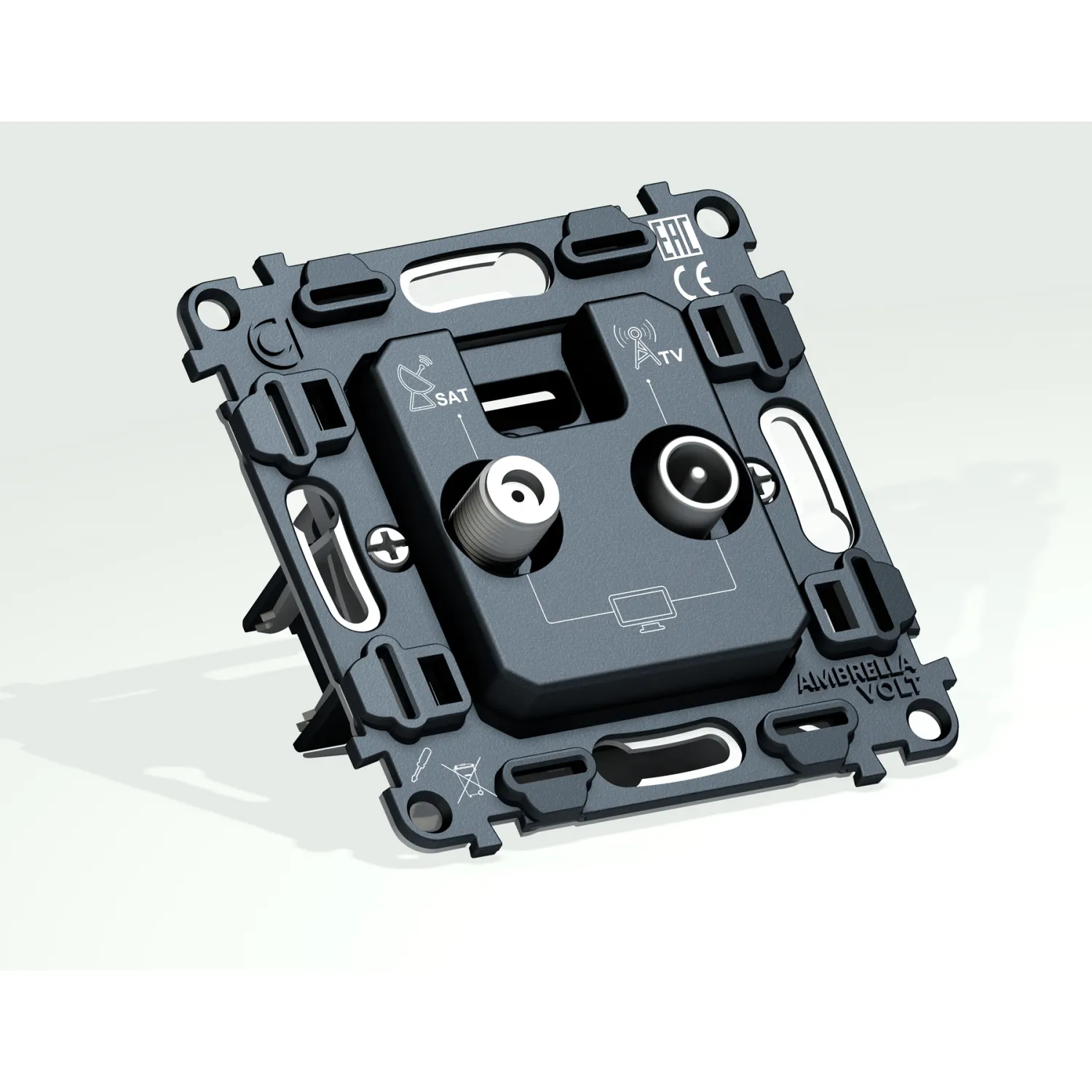 Магазин ImperiumLOFT представляет Вашему вниманию Механизм розетки TV оконечной + SAT 5-862MHz 3.5dB/950-2150MHz 3.5dB Volt QUANT VM217 от производителя - Volt.