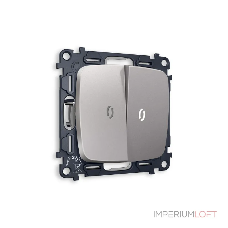 Магазин ImperiumLOFT представляет Вашему вниманию Комплект механизма 2-клавишного выключателя с подсветкой 5600K OMEGA MO504015 Сталь матовый QUANT от производителя - Voltum.