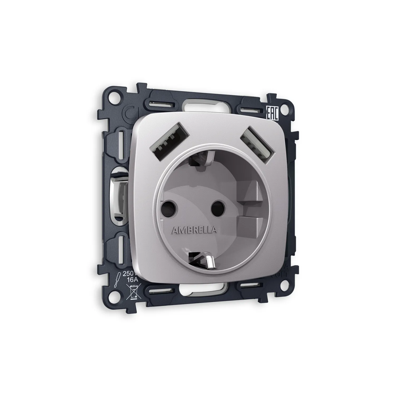 Магазин ImperiumLOFT представляет Вашему вниманию Комплект механизма электрической розетки OMEGA MO509010 Сталь матовый 2USB A+A 18W быстрая зарядка с заземлением и шторками 2P+E 16A-250V QUANT от производителя - Voltum.