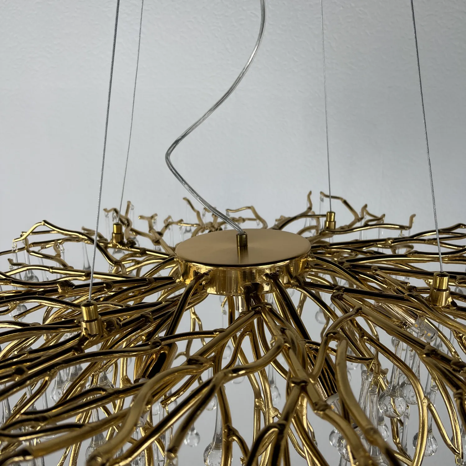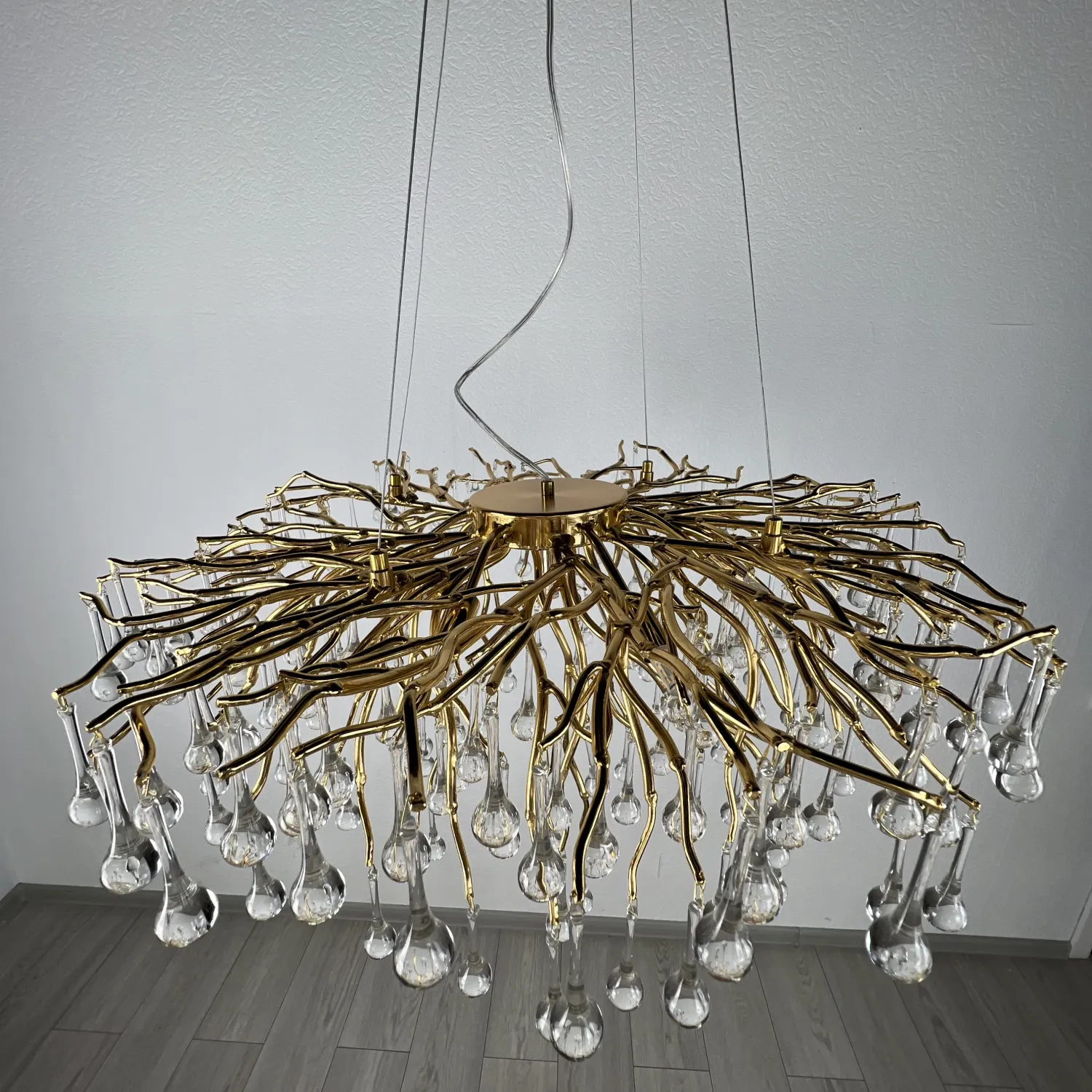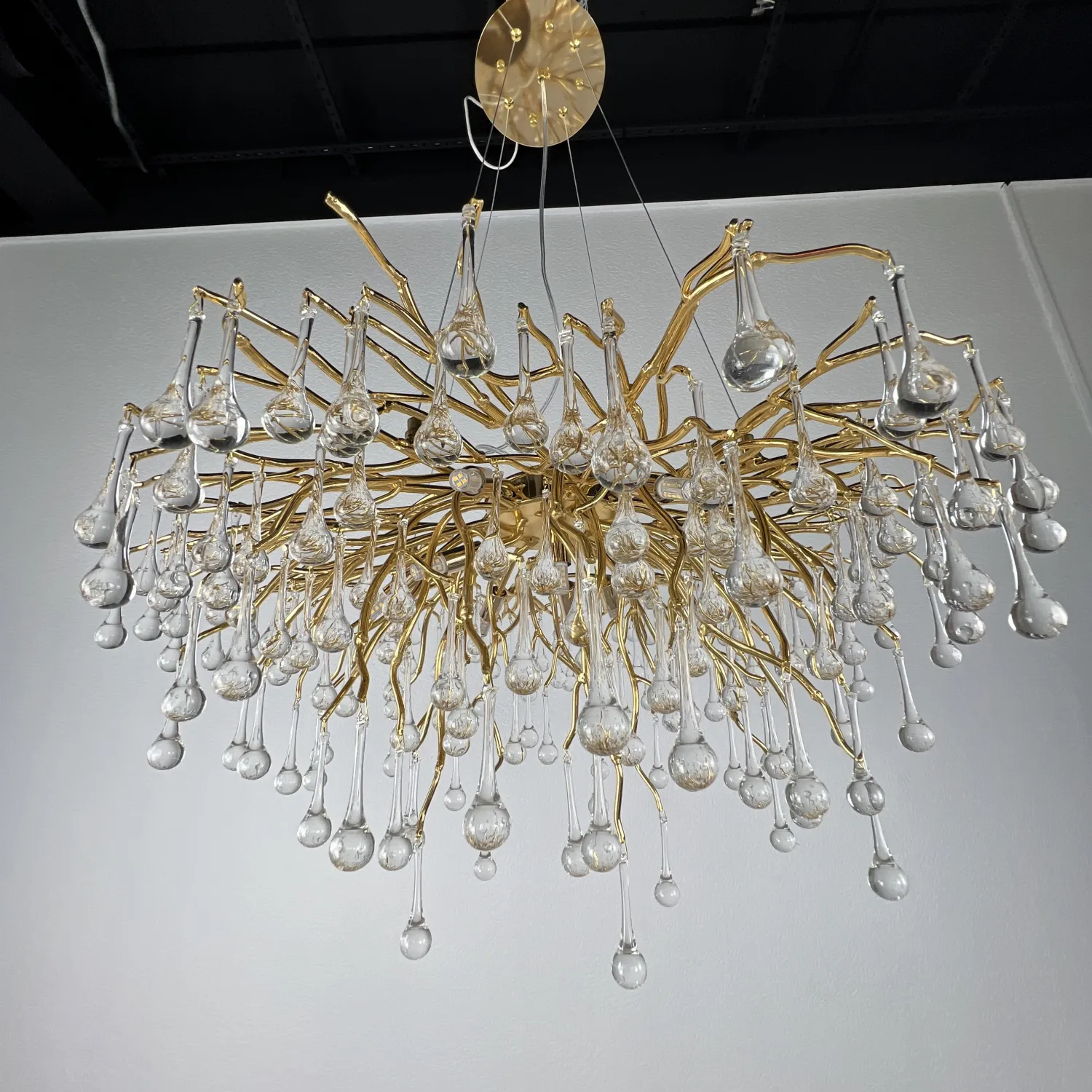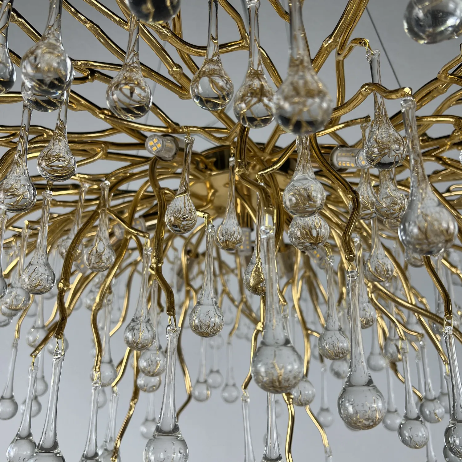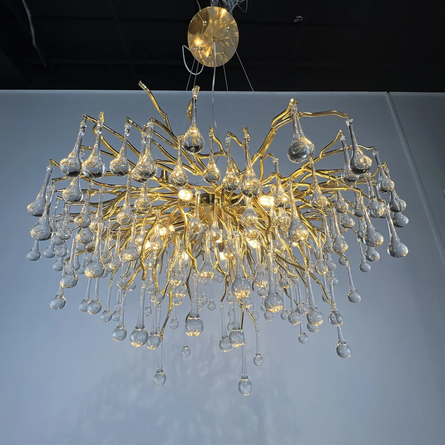 Серия современных люстр на металлическом каркасе с прозрачными подвесками из стекла в виде капель MARIAN