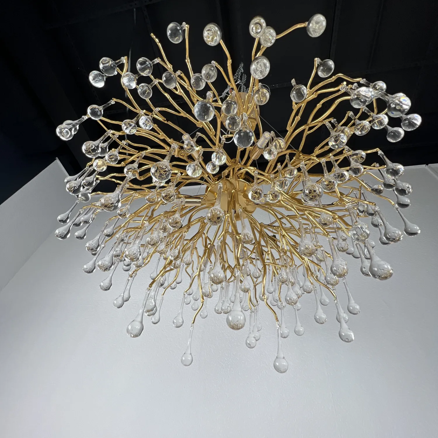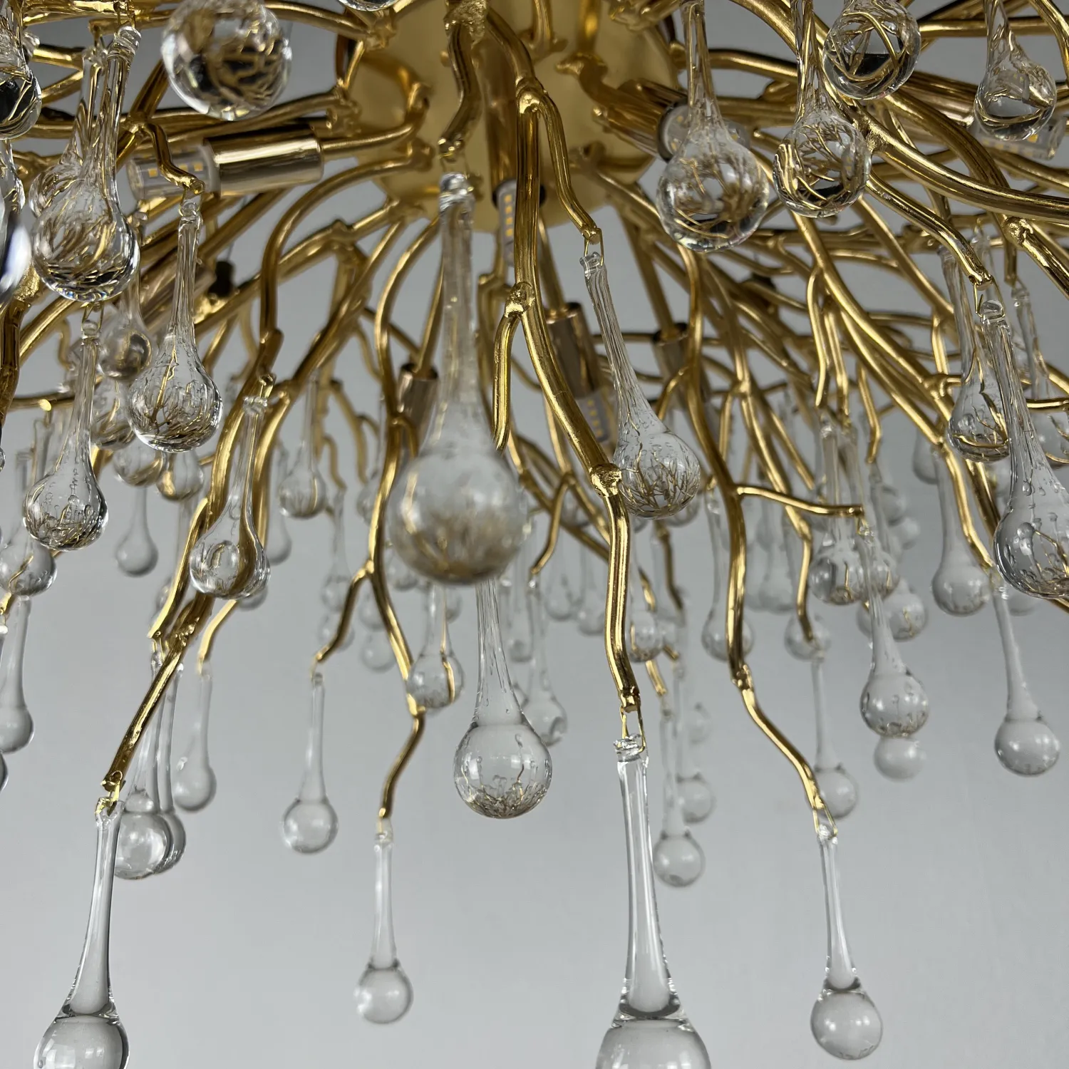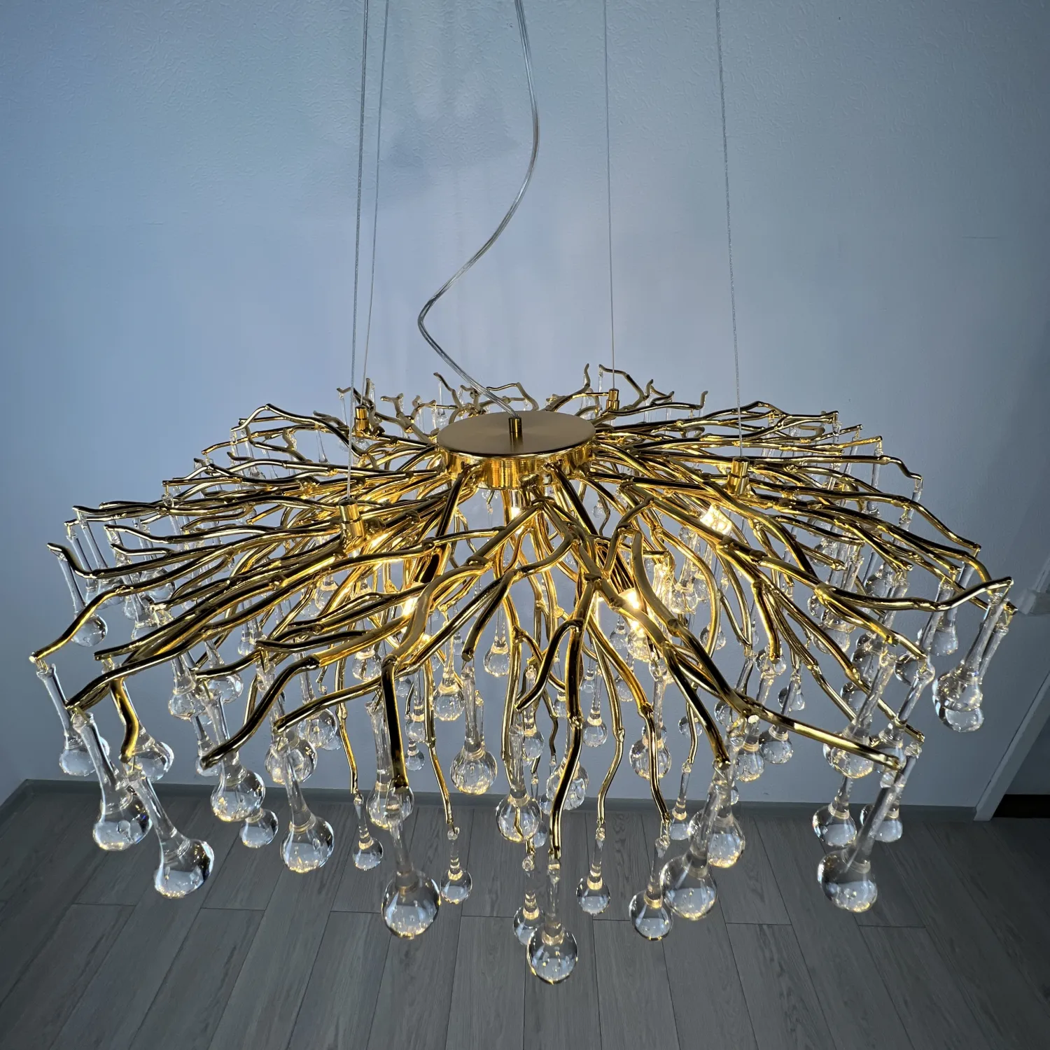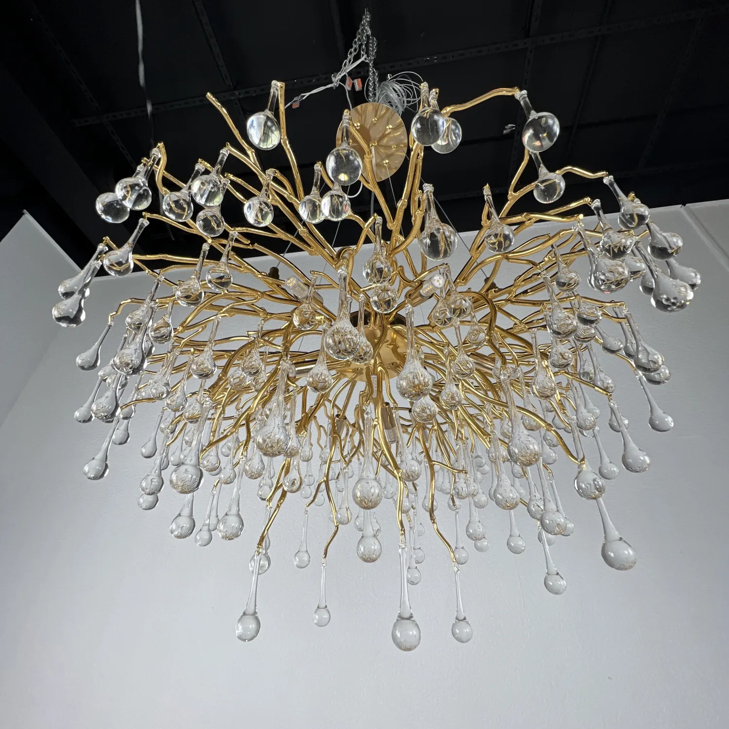 Серия современных люстр на металлическом каркасе с прозрачными подвесками из стекла в виде капель MARIAN