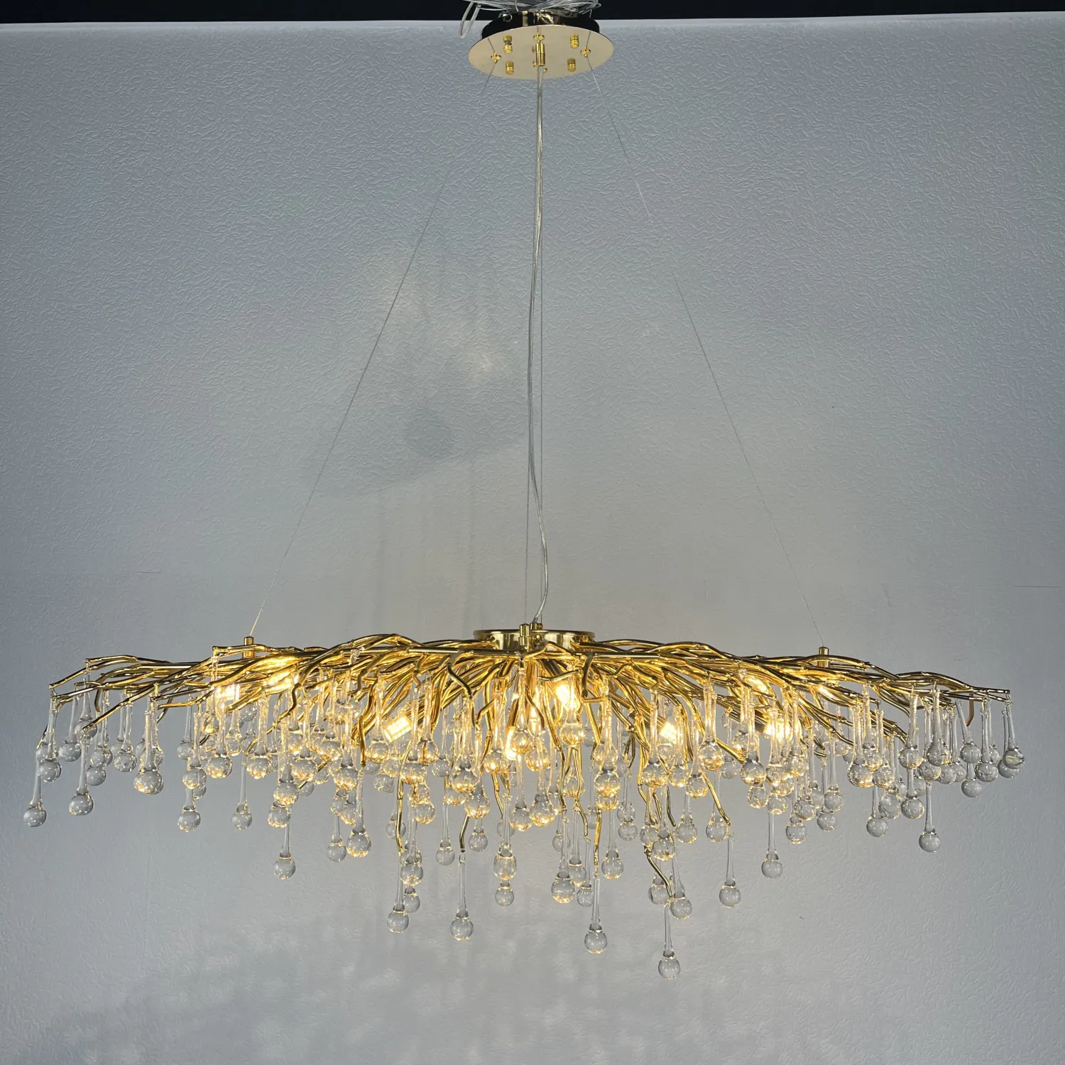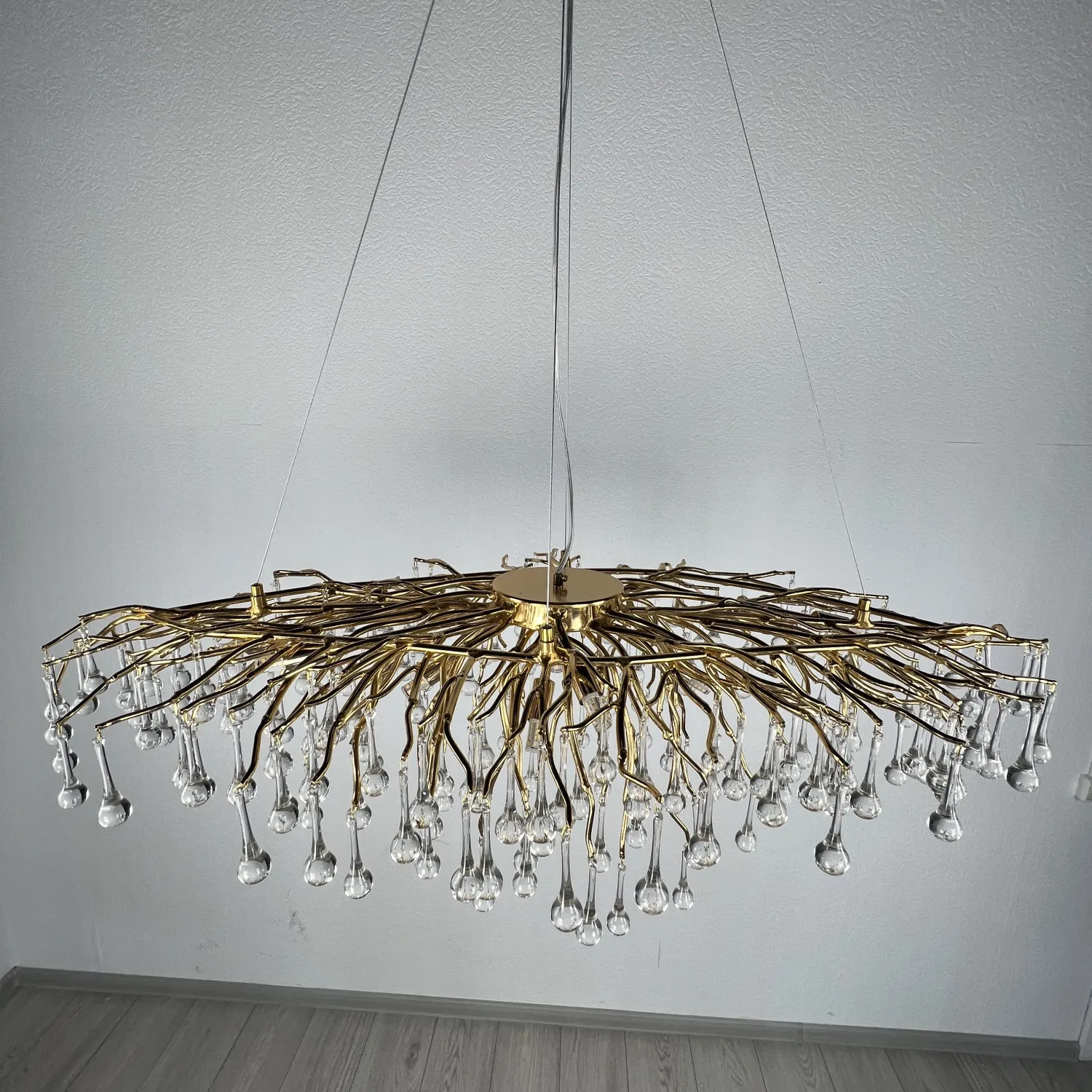 Эта потрясающая люстра станет настоящим украшением любого помещения. Ее изысканный и изящный дизайн с линиями, которые напоминают плавные волны, придадут вашему интерьеру неповторимый шарм и стиль.