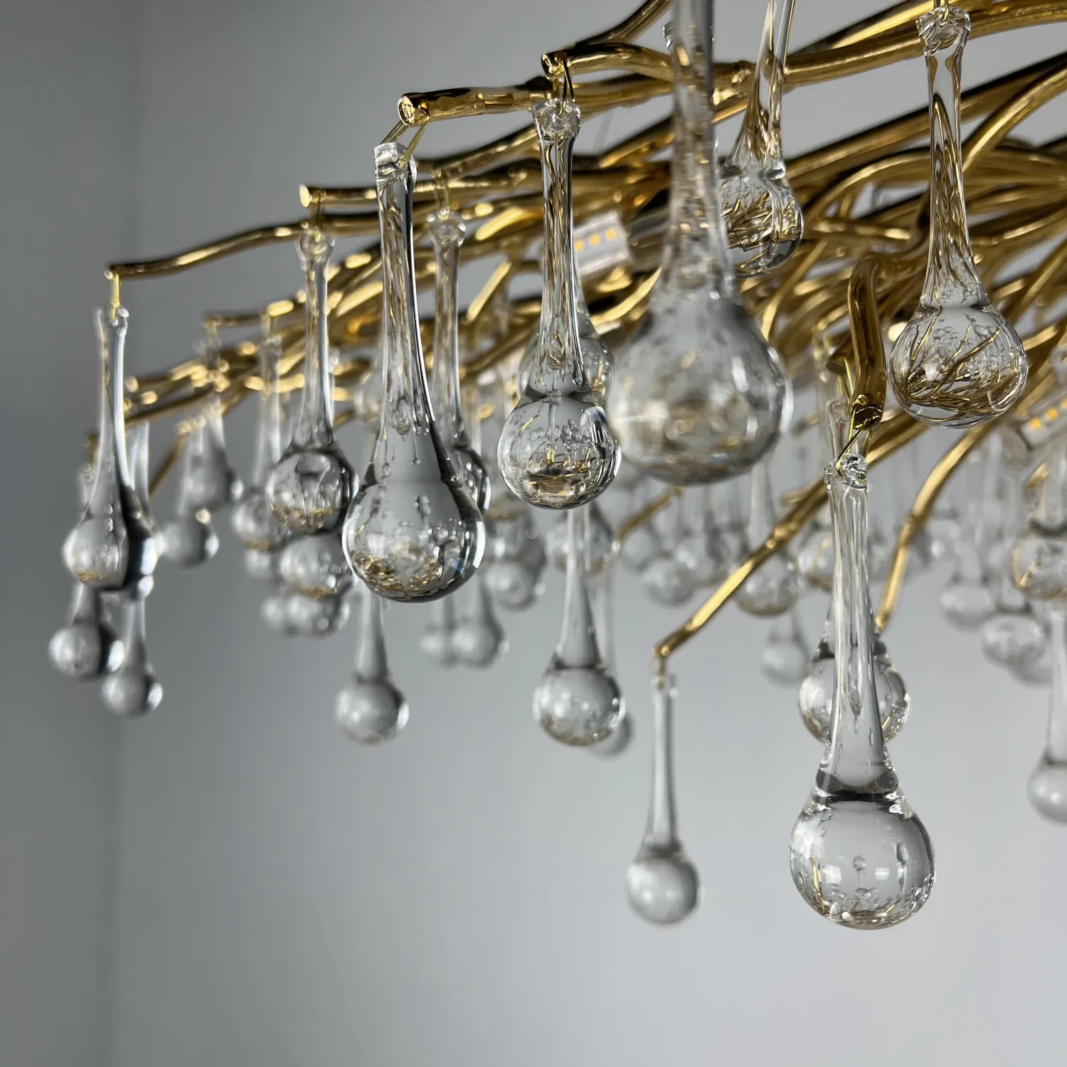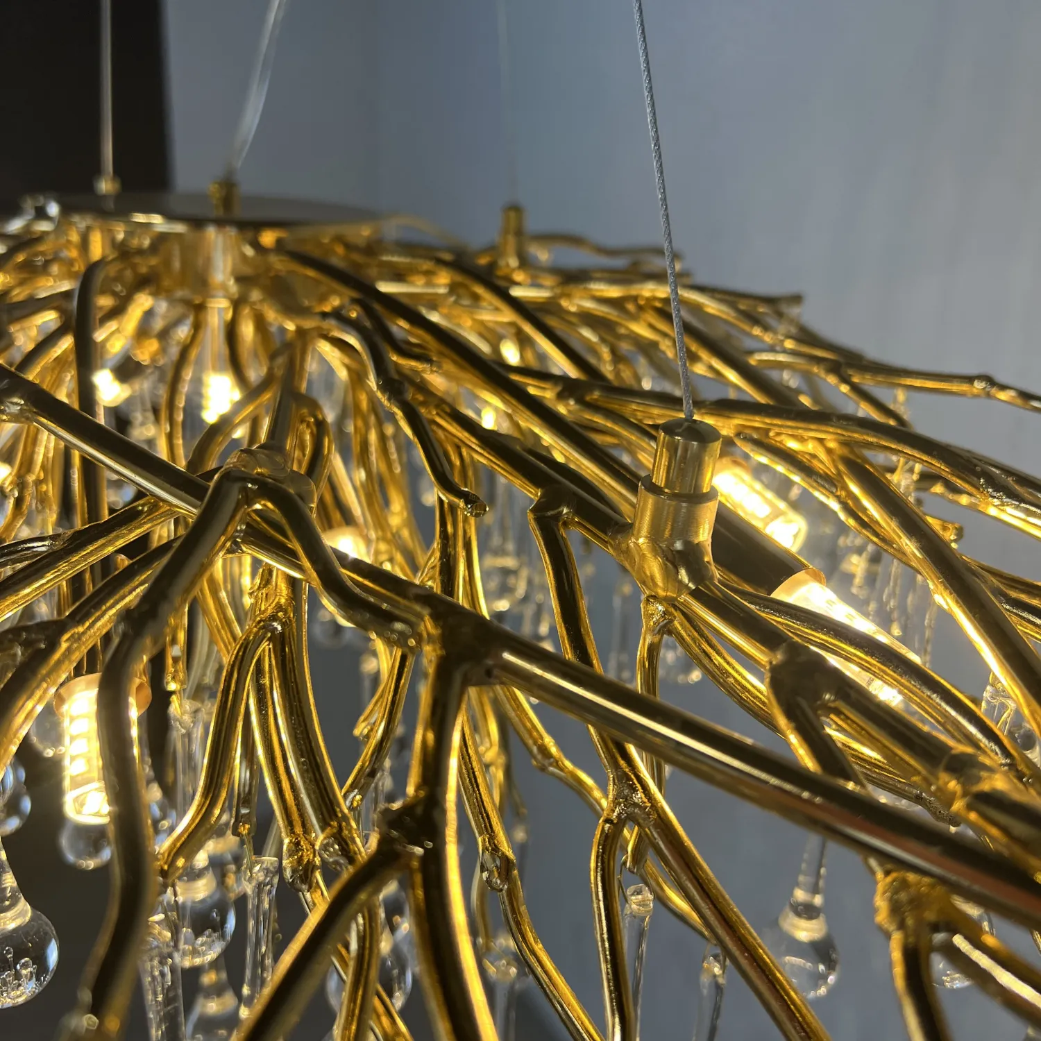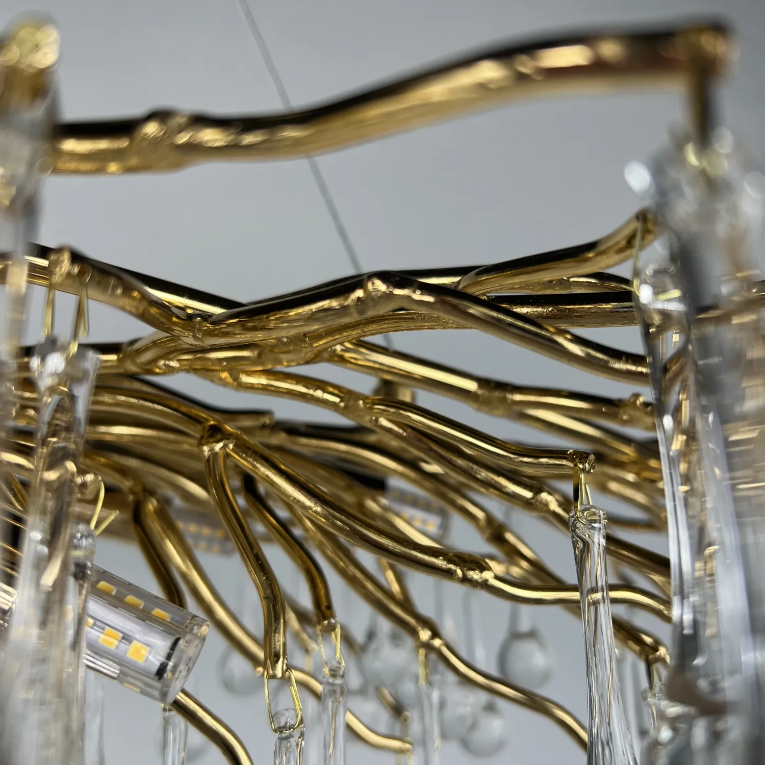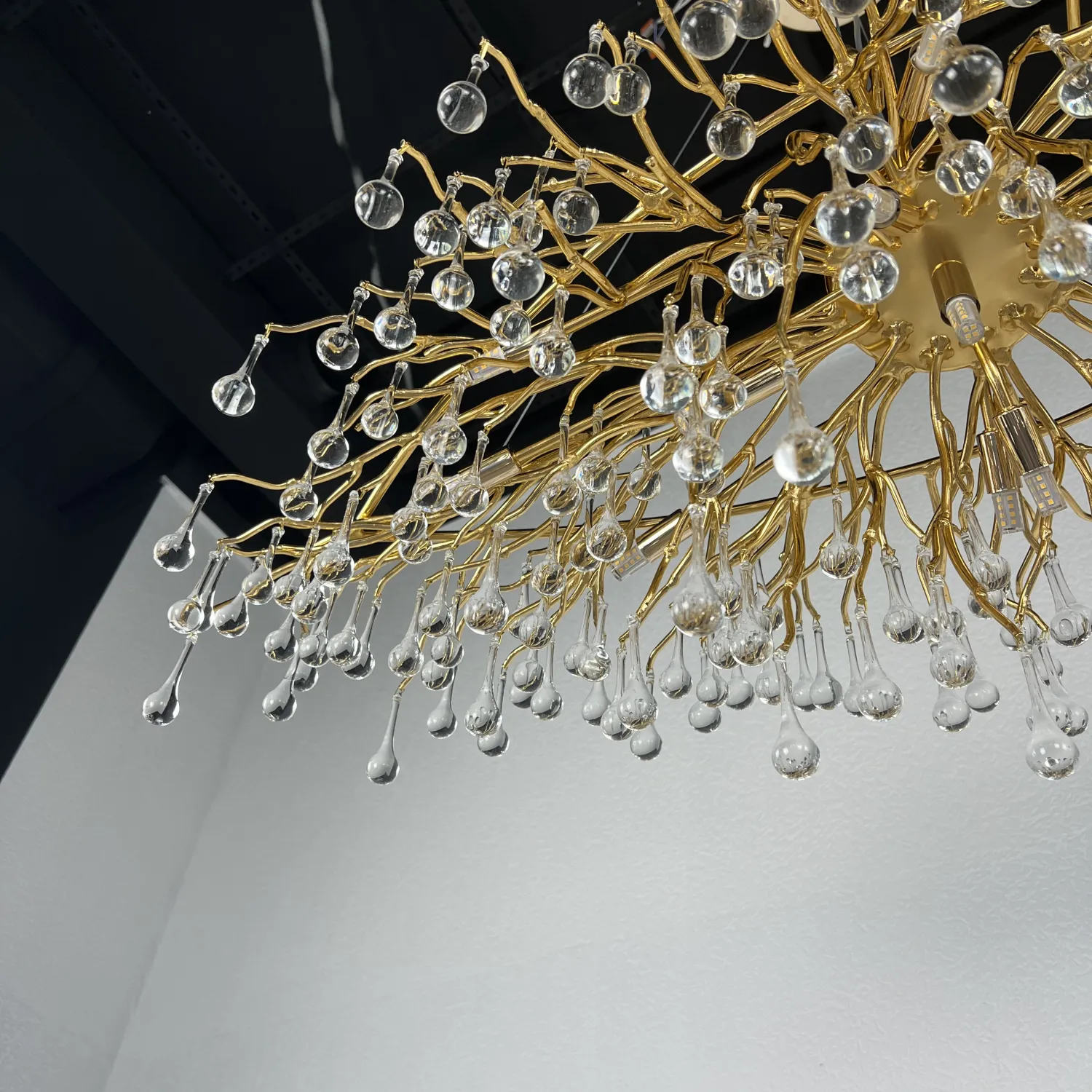 Серия современных люстр на металлическом каркасе с прозрачными подвесками из стекла в виде капель MARIAN