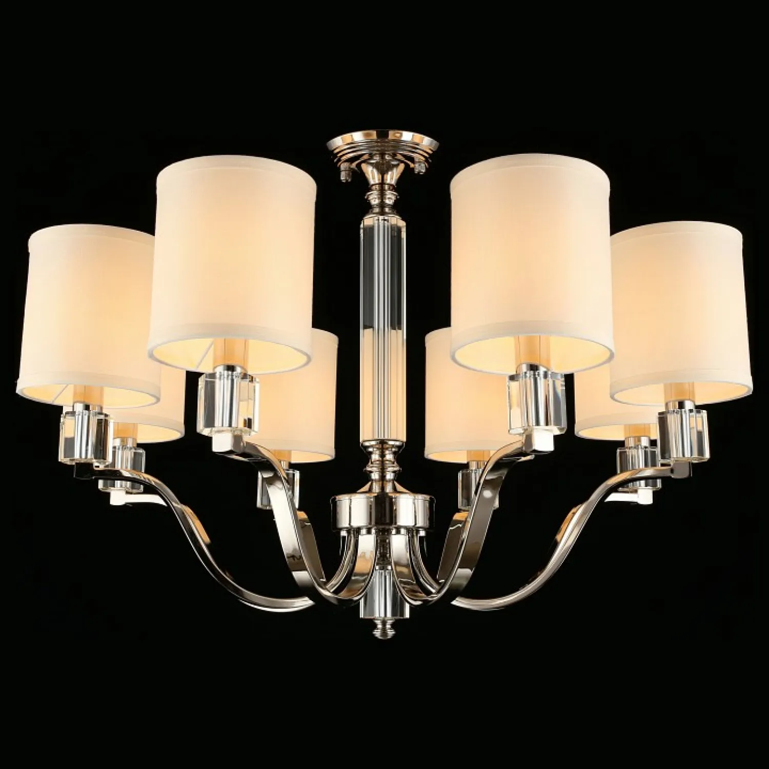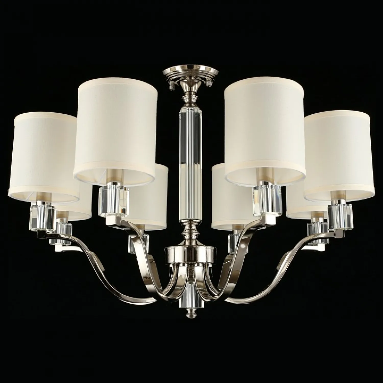 Эта люстра обладает высоким качеством изготовления и долговечностью, благодаря использованию прочных материалов. Хромированная арматура придает ей блеск и элегантность, а кремовые плафоны создают мягкое и приятное освещение.