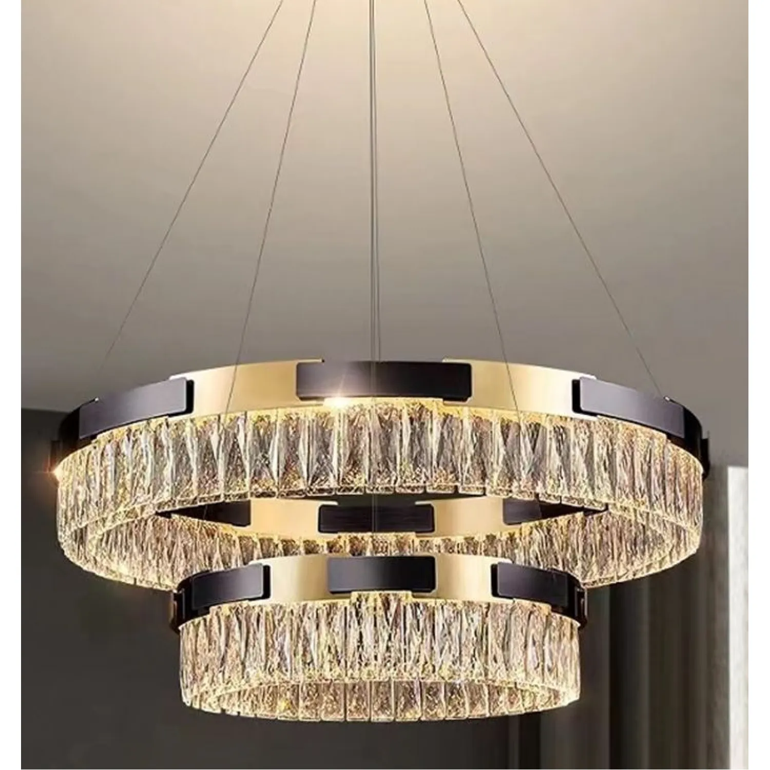 Созданная из высококачественных материалов, эта люстра обладает изысканным дизайном и функциональностью. Ее двойные светильники позволяют равномерно осветить пространство, создавая приятную атмосферу в комнате.