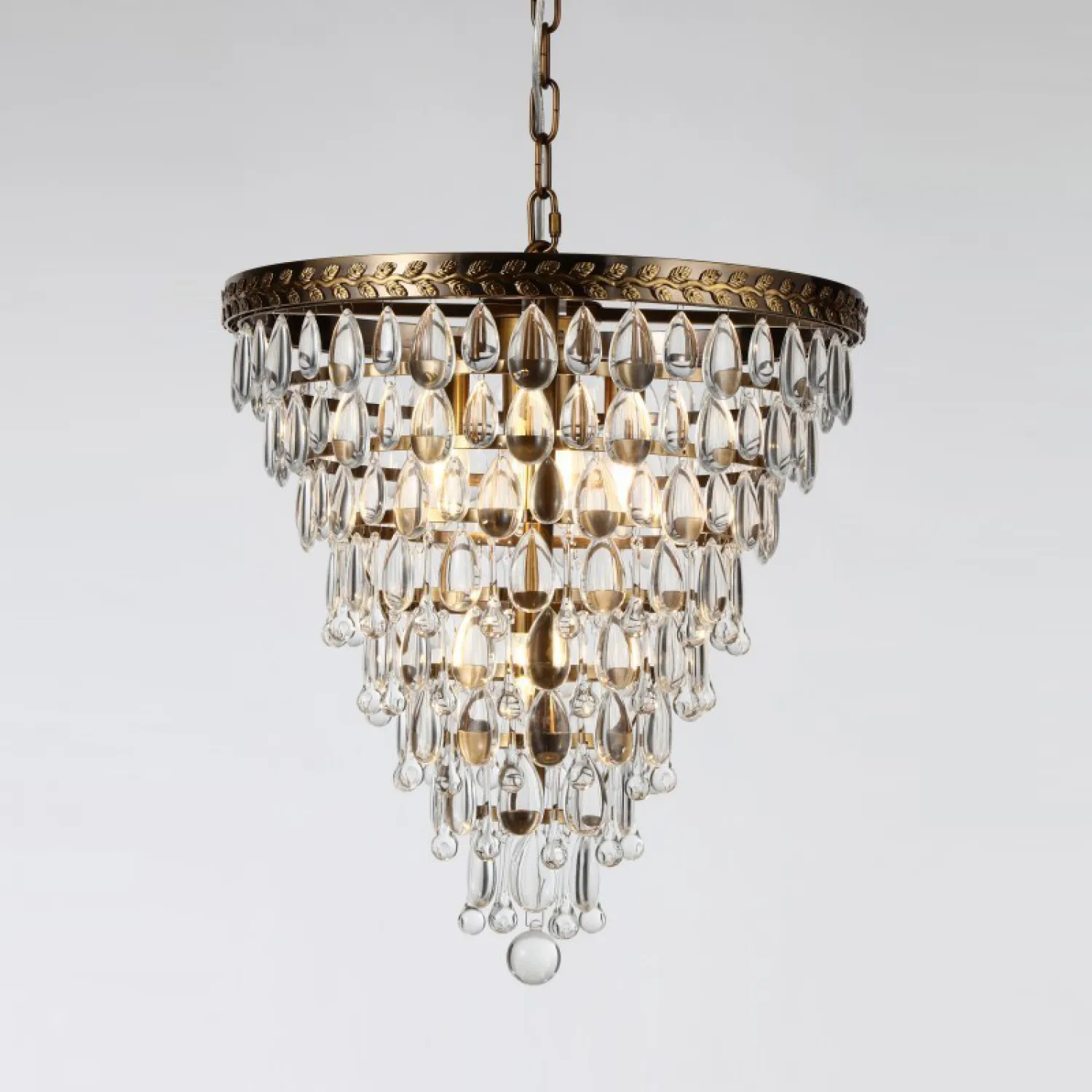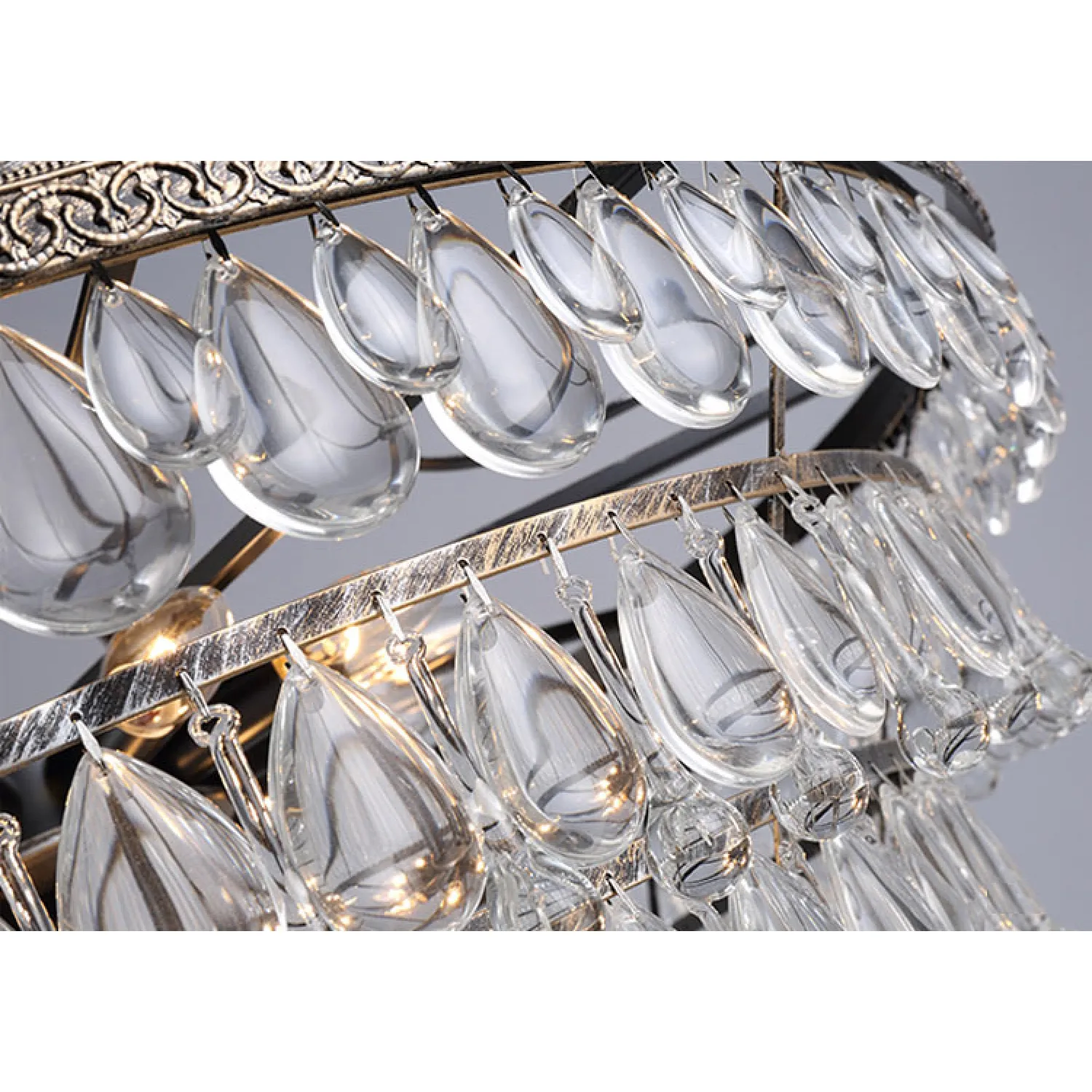 Светильник оснащен пятью плафонами из прозрачного стекла, которые создают красивые игры света и тени. Красивая отделка из хромированного металла придает ему изысканный вид.