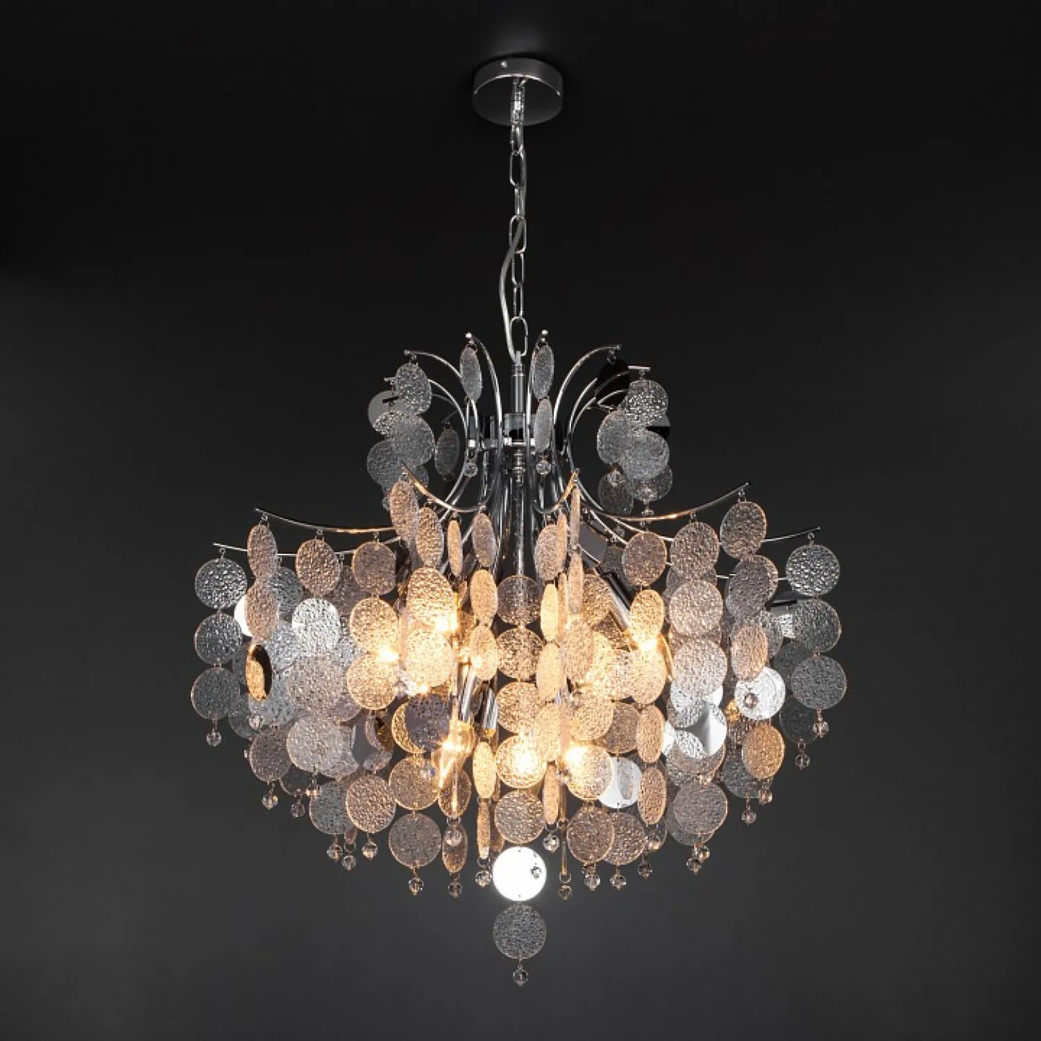 Светильник оснащен девятью эффектными плафонами из прозрачного стекла, которые создают яркий и равномерный световой поток. Благодаря своей умной функции, вы можете легко контролировать яркость и цвет света с помощью специального приложения на вашем смартфоне или планшете.