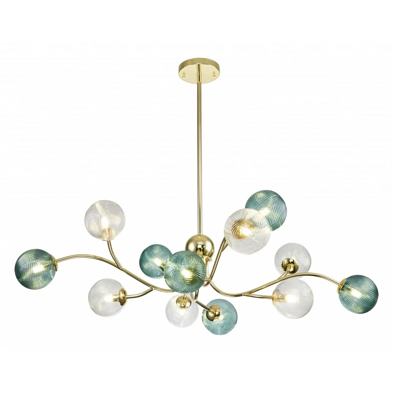 Люстра оснащена 12 роскошными плафонами, которые создают прекрасное освещение и придают комнате особую атмосферу. Благодаря штанге, вы сможете регулировать высоту люстры и создавать идеальное освещение для любого помещения.