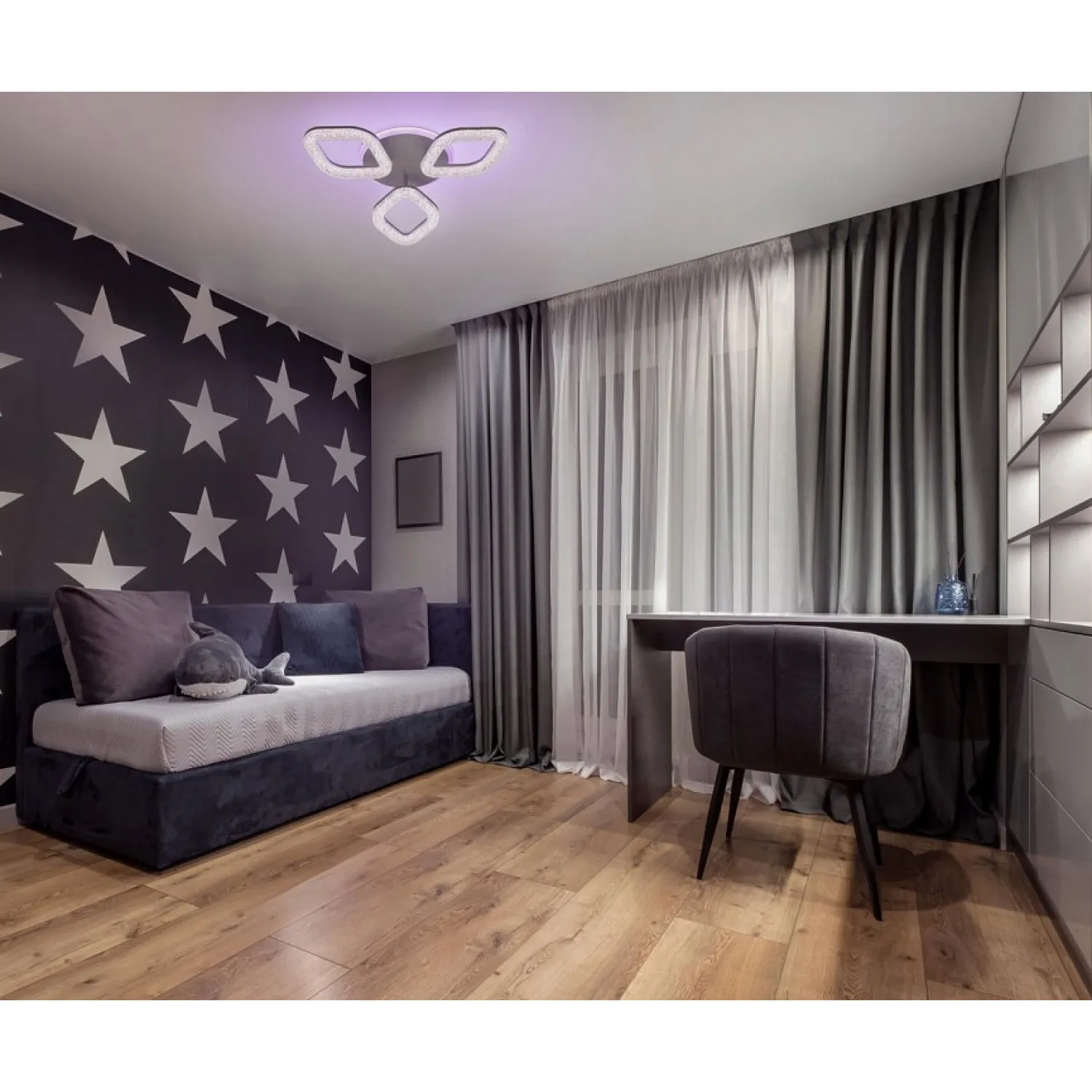 Люстра оснащена пятью лампочками, которые обеспечивают яркое и равномерное освещение. Вы сможете регулировать яркость света в зависимости от вашего настроения и потребностей. Кроме того, она легко монтируется на потолок, что делает установку простой и удобной.