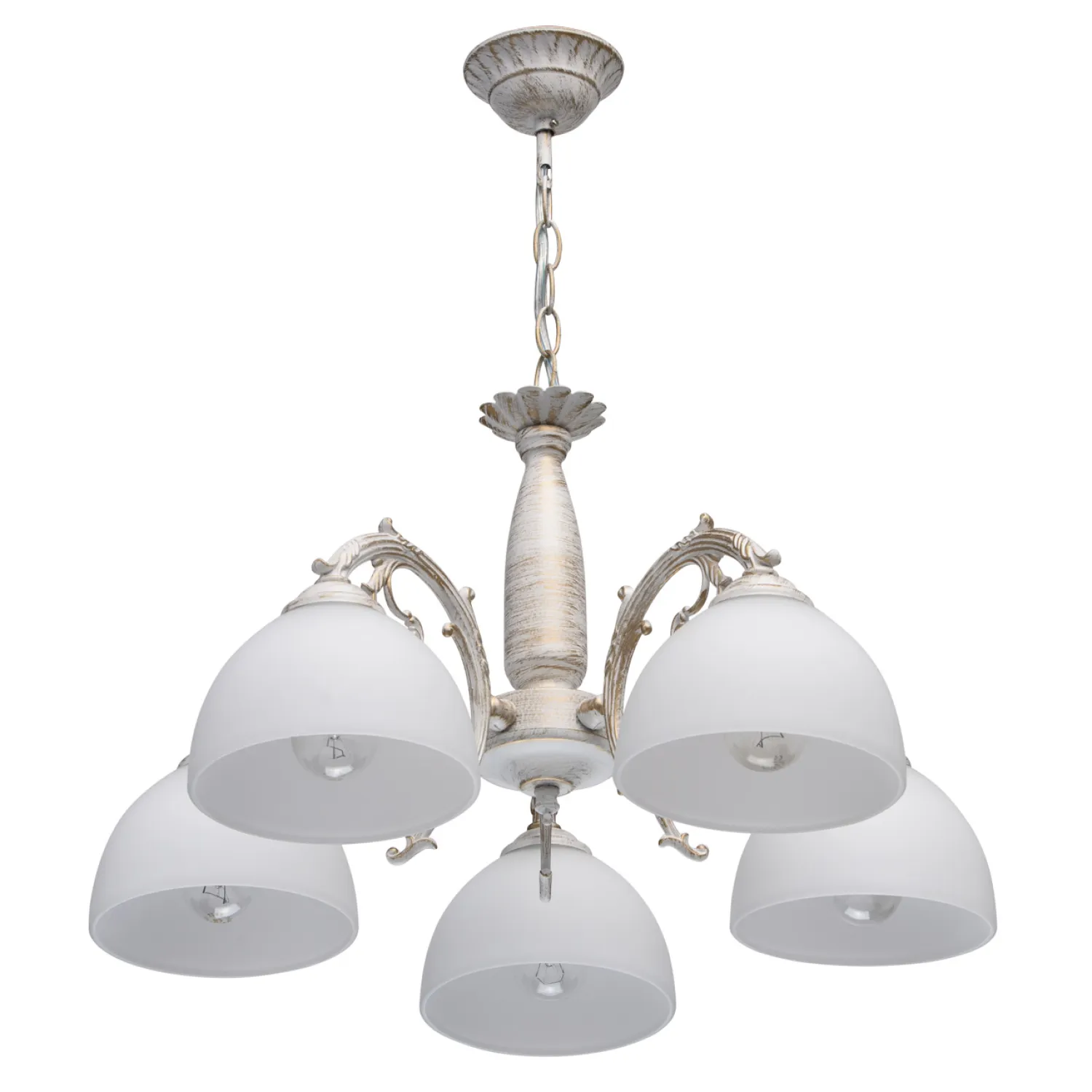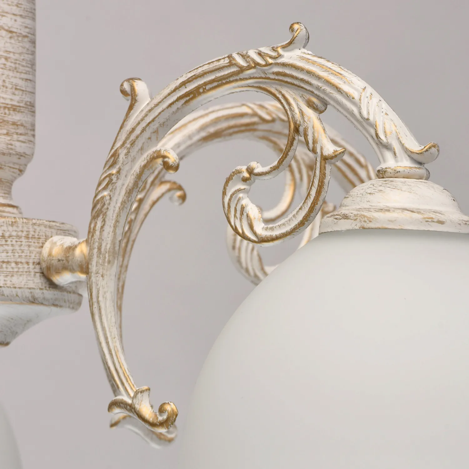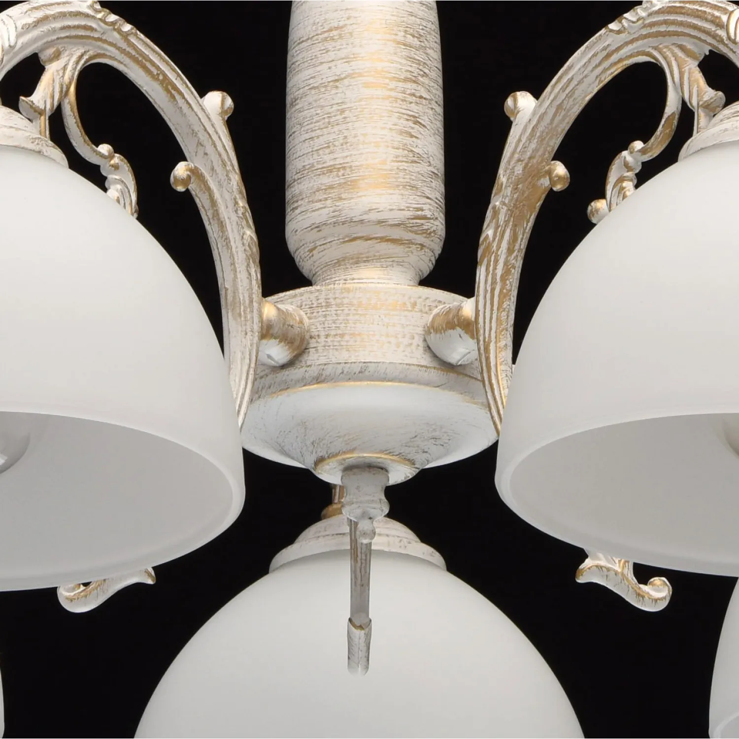 Цвет плафонов белый придает освещению нежность и свежесть, а цвет арматуры золото добавляет изысканности и роскоши.