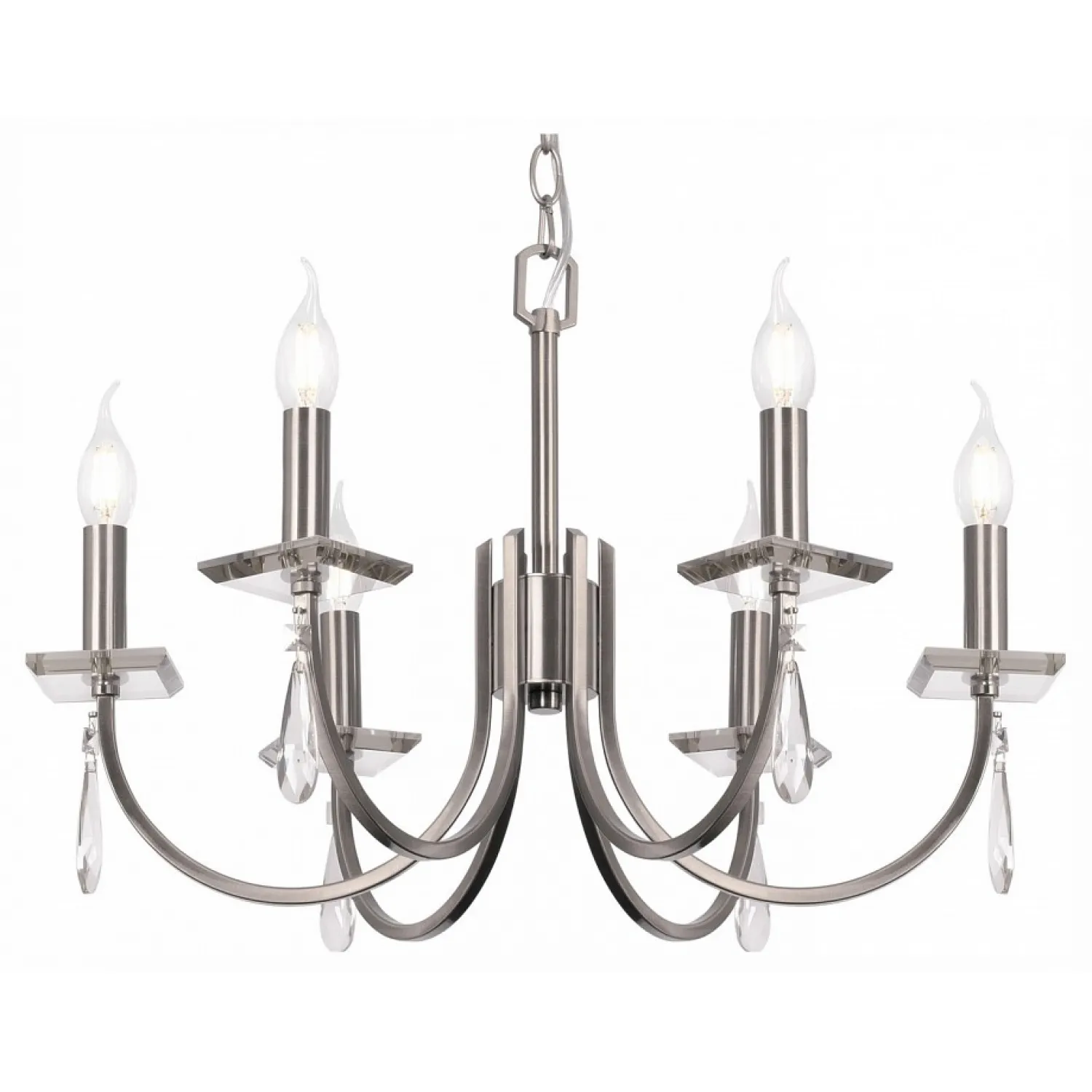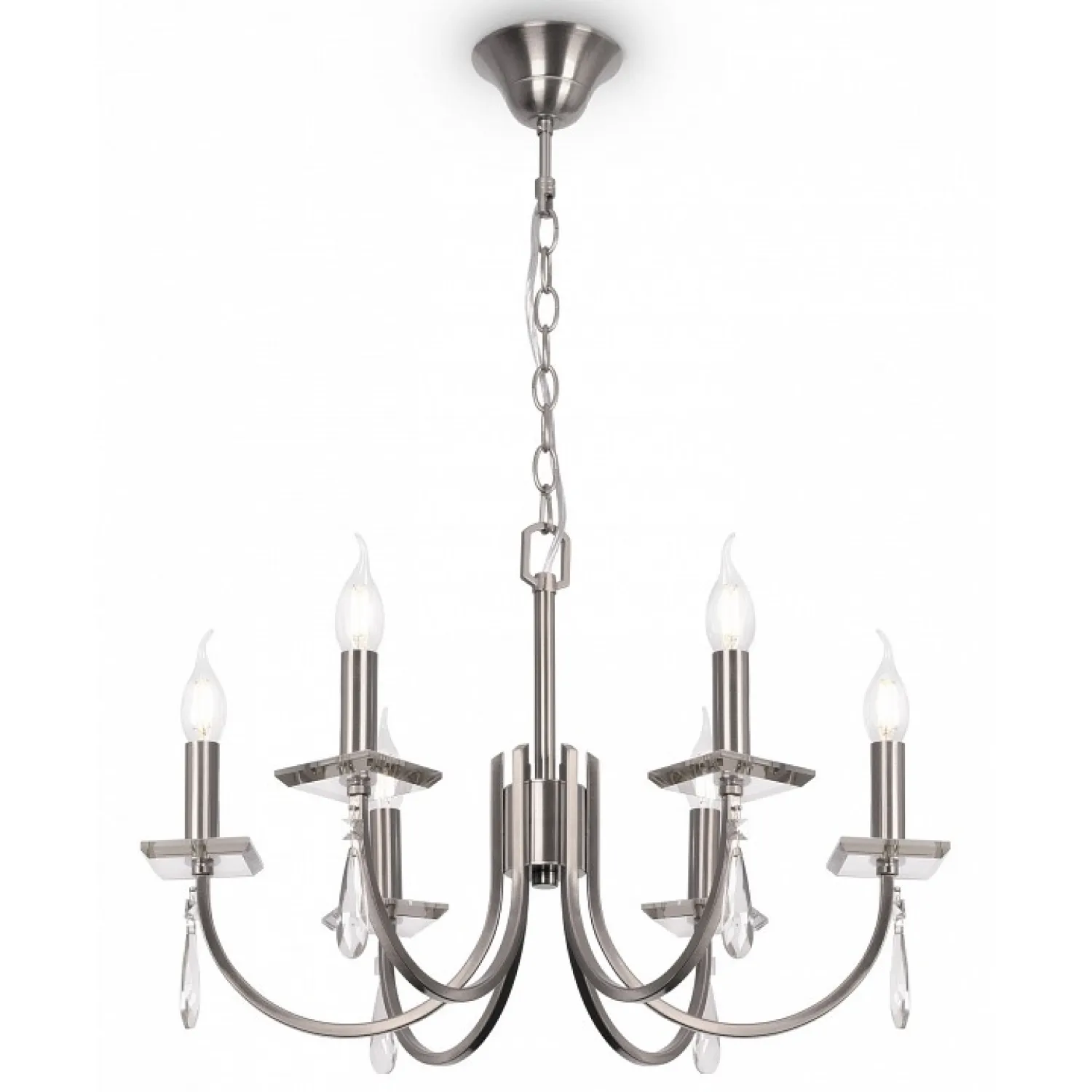 Благодаря своему стильному дизайну и никелевой отделке, эта люстра привнесет нотку современности и роскоши в вашу гостиную, столовую или спальню. Ее прозрачные плафоны позволят максимально использовать световой поток, создавая яркое и уютное освещение в помещении.