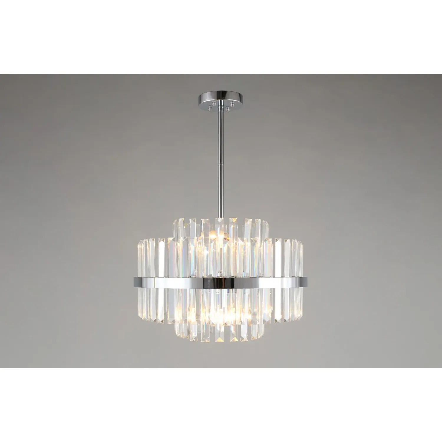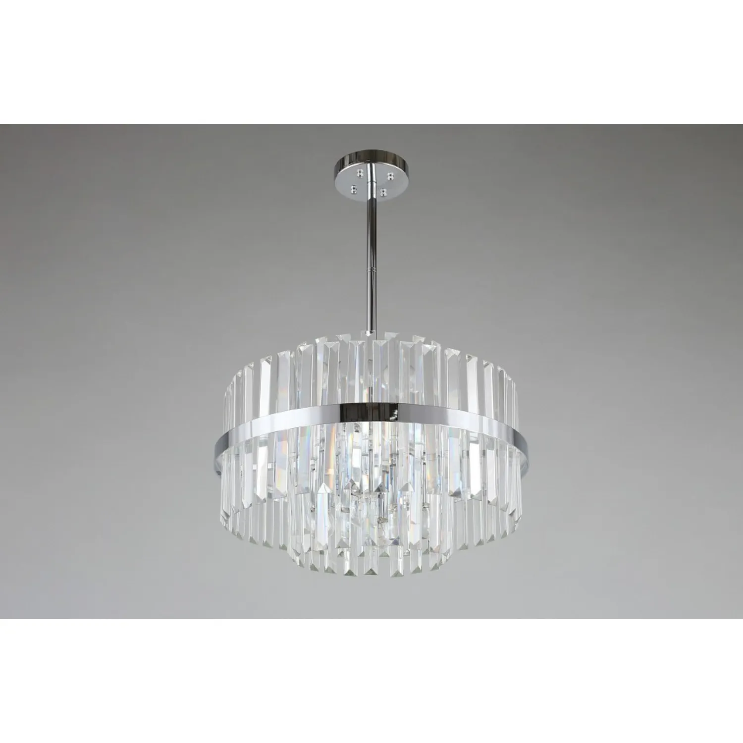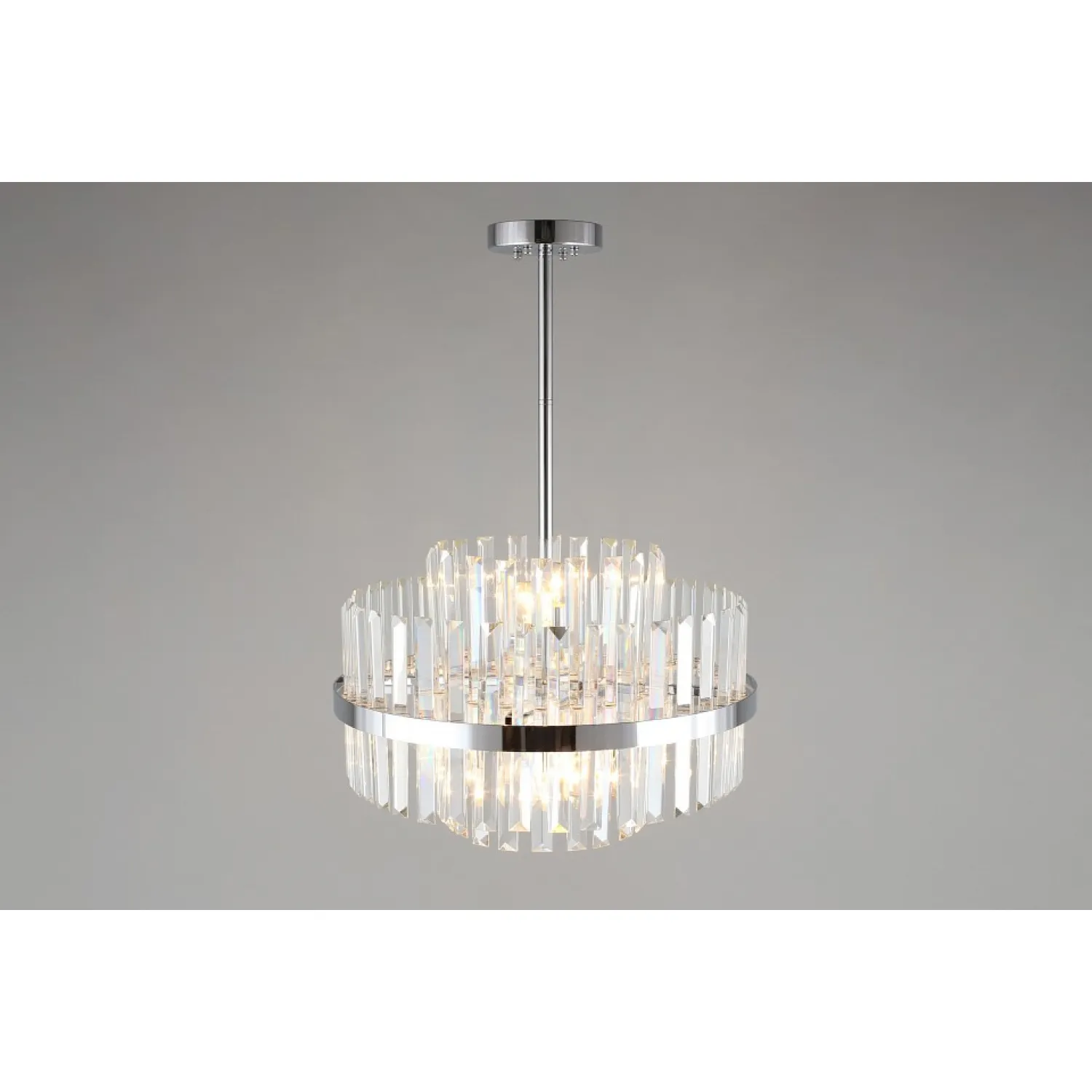 Основание изготовлено из высококачественного металла, что обеспечивает прочность и долговечность конструкции. Штанга позволяет регулировать высоту люстры, что делает ее идеальным выбором для помещений с разными высотами потолка.
