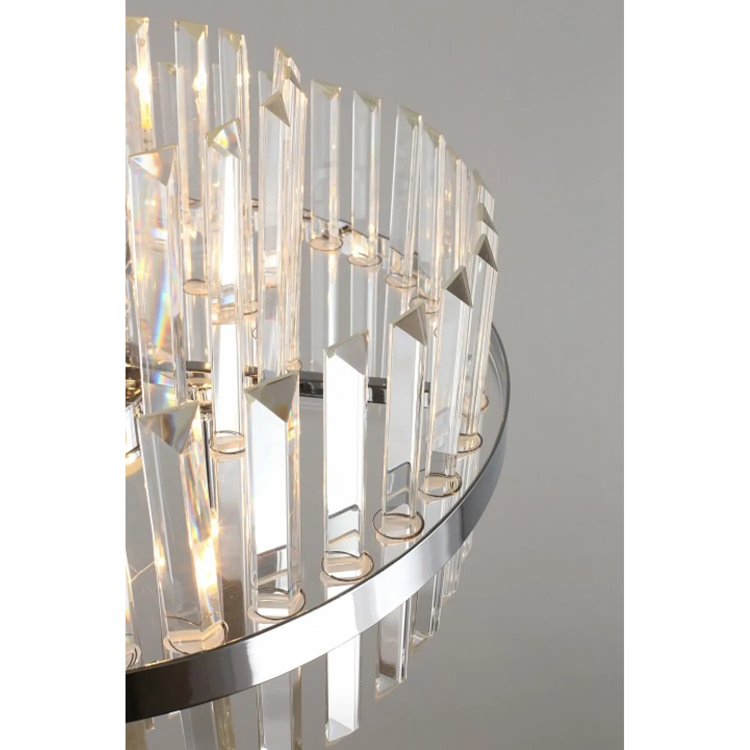 Особенностью этой люстры является ее уникальный дизайн. Шесть плафонов из прозрачного стекла с добавлением хромированных элементов создают эффектный световой эффект и рассеивают свет равномерно по всему помещению. Это создает прекрасную игру света и тени, которая придает вашему интерьеру особый шарм.