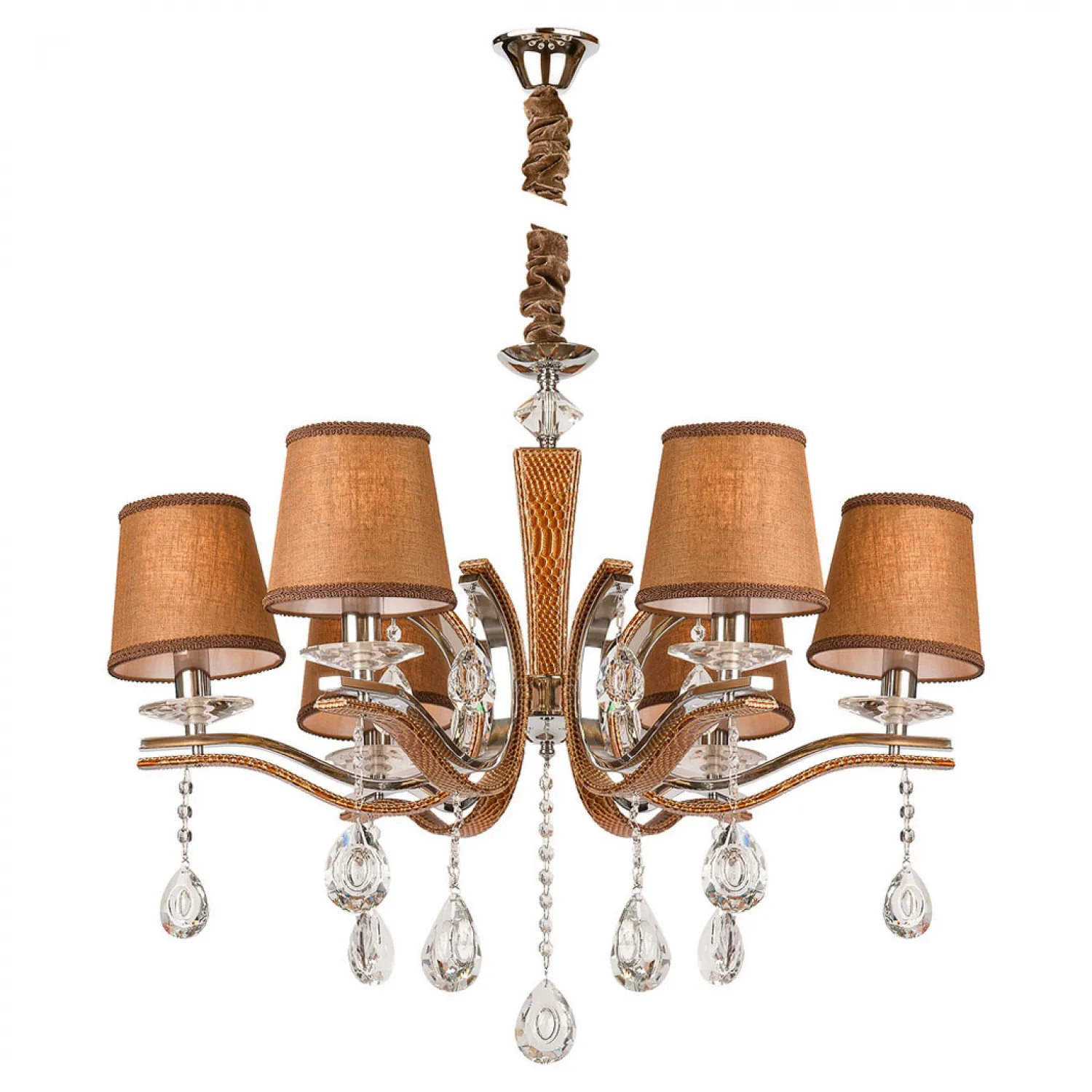 С шестью лампами, расположенными на разных уровнях, эта люстра обеспечивает яркое и равномерное освещение всего помещения. Она идеально подойдет для гостиной, столовой или спальни, создавая уютную и романтическую атмосферу.