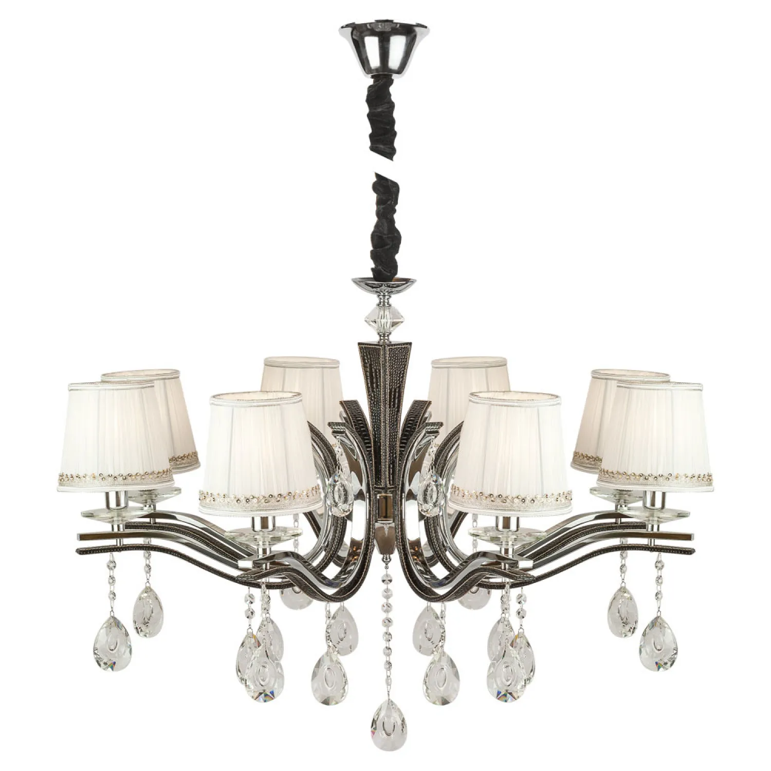 Люстра оснащена восемью плафонами из прозрачного стекла, которые создают потрясающий игру света и тени, добавляя особый шарм и эффектность в вашу комнату. Благодаря высокой яркости и равномерному распределению света, она обеспечит комфортное освещение в любом помещении.
