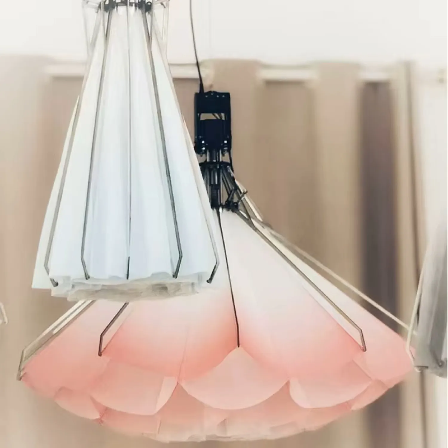 Изящная подвесная люстра с многослойной конструкцией создаёт завораживающий световой эффект, наполняя пространство мягким, рассеянным светом. Нежные бежево-кремовые оттенки и плавные линии лепестков придают интерьеру утончённую элегантность, превращая светильник в настоящий художественный объект. Благодаря продуманной конструкции свет равномерно распределяется по помещению, создавая уютную атмосферу и подчёркивая природную эстетику дизайна. Эта люстра станет идеальным выбором для современных интерьеров, где ценится сочетание функциональности и художественной выразительности, гармонично вписываясь как в классический, так и в минималистичный дизайн.