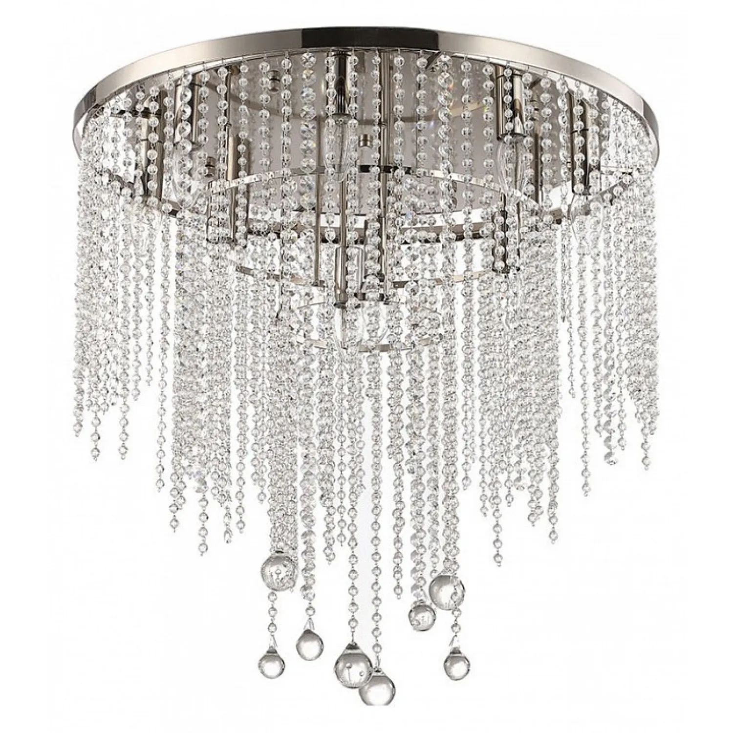 Созданная из прочного металла с покрытием из хромированного стекла, эта люстра привлекает внимание своим блеском и роскошным видом. Ее 11 подвесных плафонов из матового стекла создают мягкое и приятное освещение, которое подчеркнет красоту вашего интерьера.