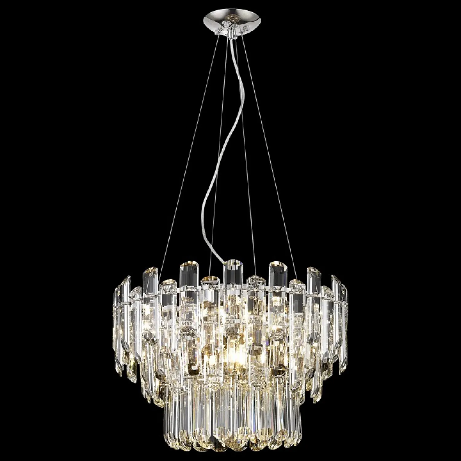 Эта потрясающая люстра сочетает в себе изысканный дизайн и высокое качество исполнения. Ее элегантная форма и хромированный металлический каркас придают ей изысканность и привлекательность. Благодаря своему минималистичному дизайну, она легко впишется в любой интерьер, добавляя ему шарма и роскоши.