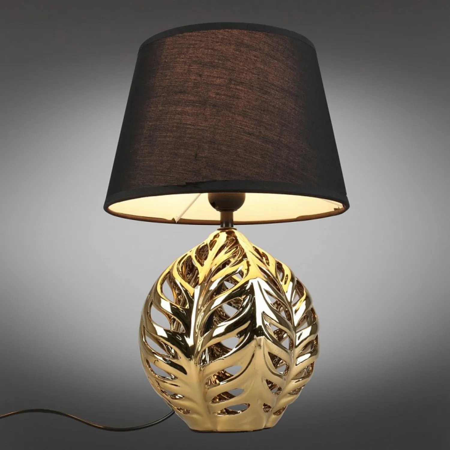 Цвет арматуры золото придает лампе роскошный и изысканный вид, который будет идеально сочетаться с любым интерьером. Черные плафоны добавляют нотку таинственности и придают лампе особую привлекательность.