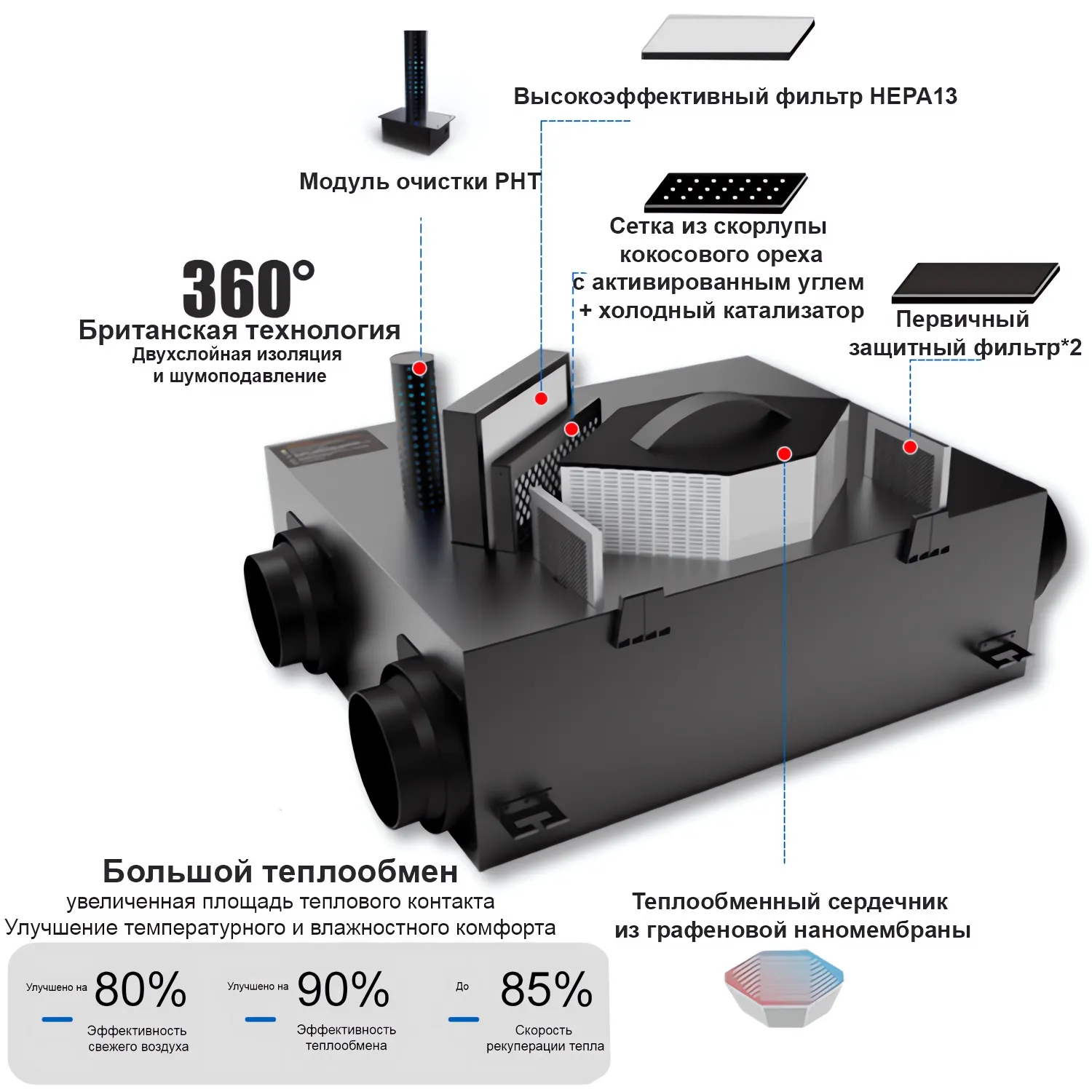 Установка идеально подходит для создания здорового и комфортного микроклимата в жилых и коммерческих помещениях, с оптимальным сочетанием экономии энергии и высокой производительности.