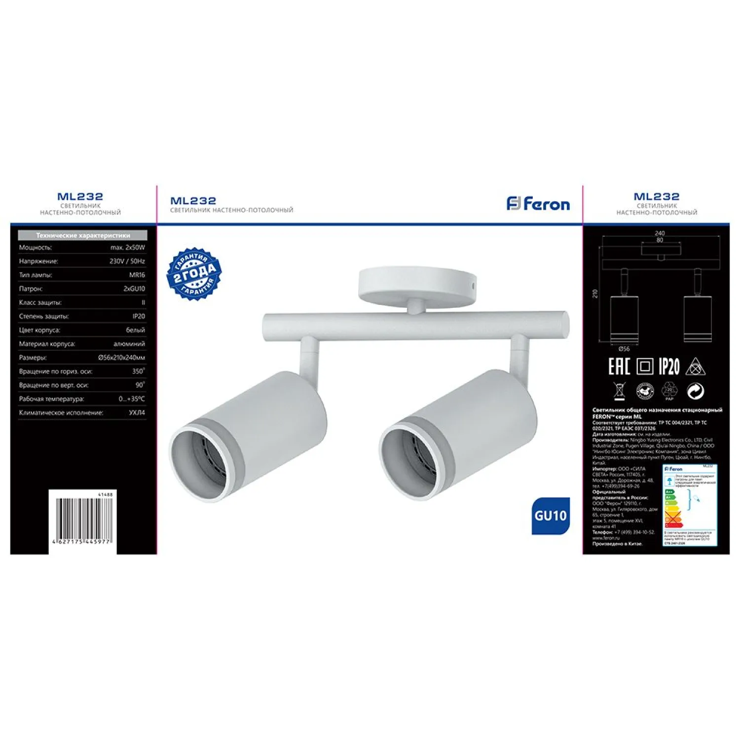 Спот Feron Barre 41488 обладает высокой яркостью и эффективностью освещения. Он оснащен четырьмя регулируемыми светильниками, которые позволяют направить свет в нужном направлении. Таким образом, вы сможете создать идеальную атмосферу в комнате, подчеркнуть определенные участки или предметы интерьера.