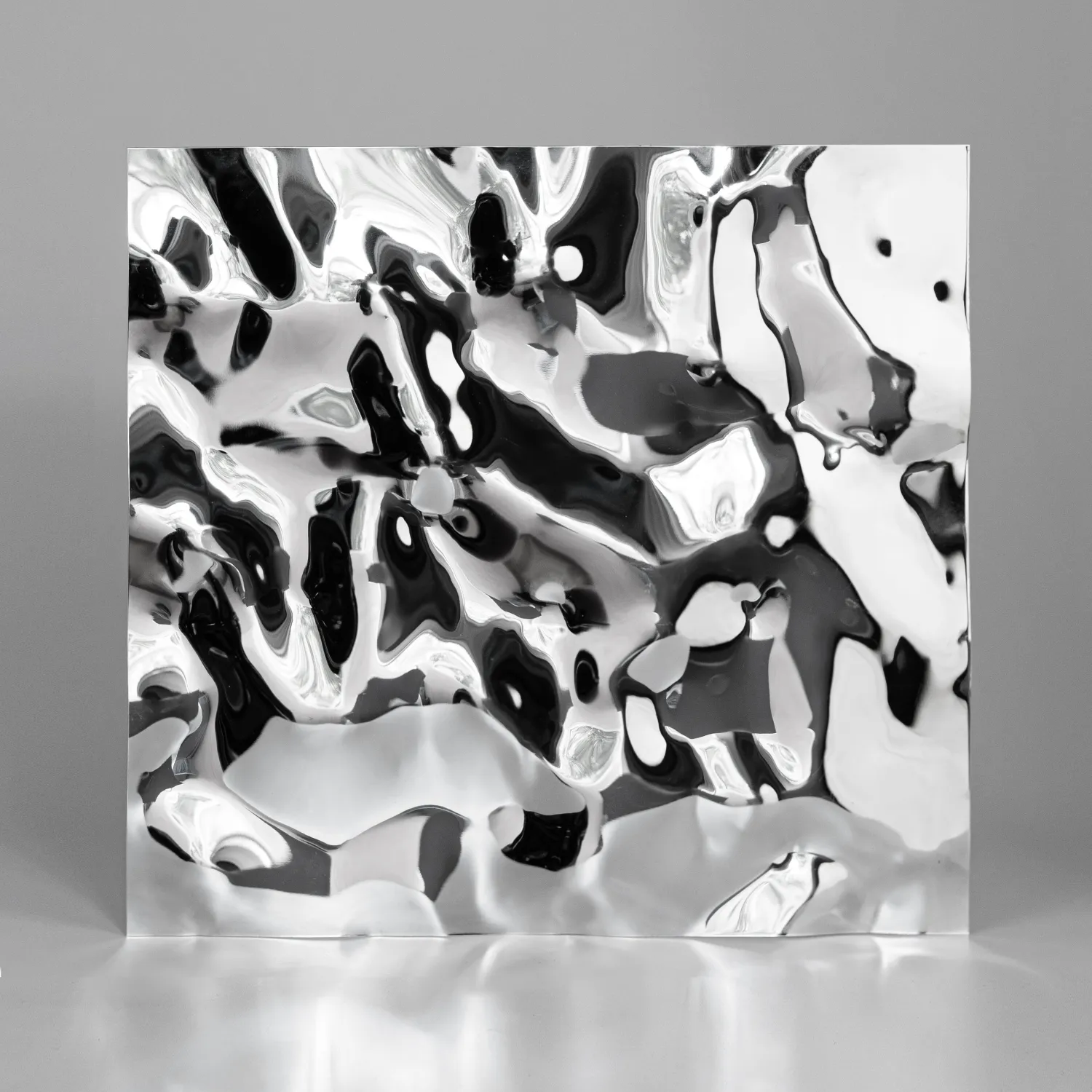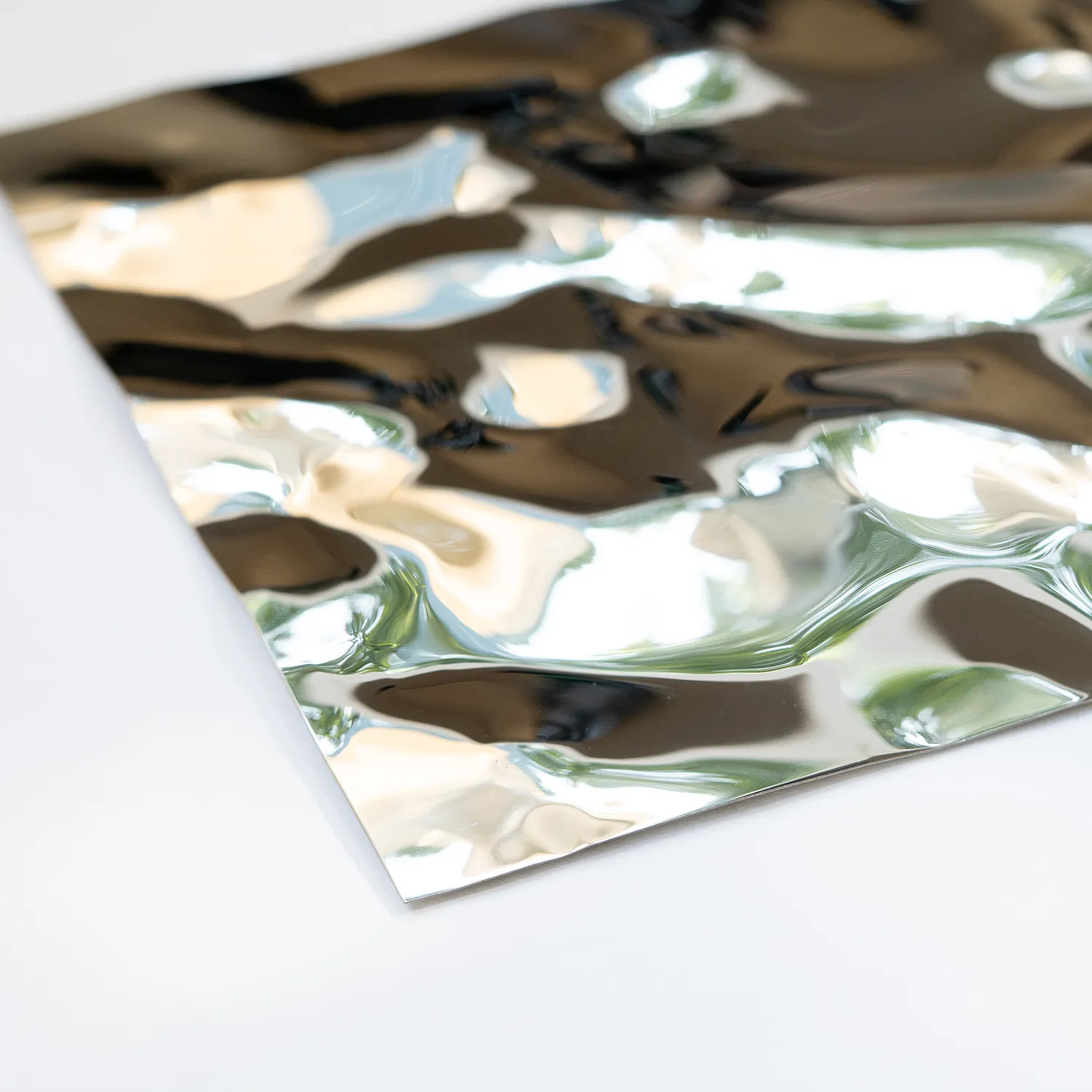 Декоративная нержавеющая сталь Водная рябь — это настоящее произведение искусства. Эффект водной ряби и переливы цвета мгновенно захватывают взгляд. Зеркальная поверхность создает ощущение движения — идеально для любых интерьеров, в которых важны энергия, ритм и выразительность. Материал подойдет как для оформления арт-пространств, так и для облицовки стен, колонн и стоек ресепшн в холлах.