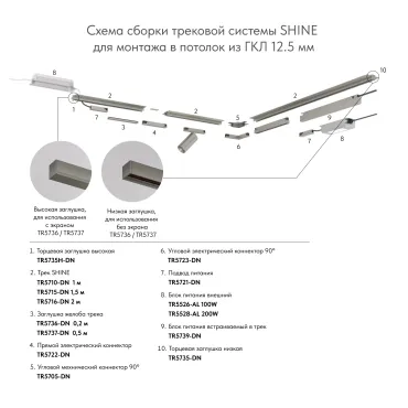 Шинопровод встраиваемый низкопрофильный под шпаклевку серия SY-LINK Чёрный IP20 SY-LINK-20T2S-2.5-BL
