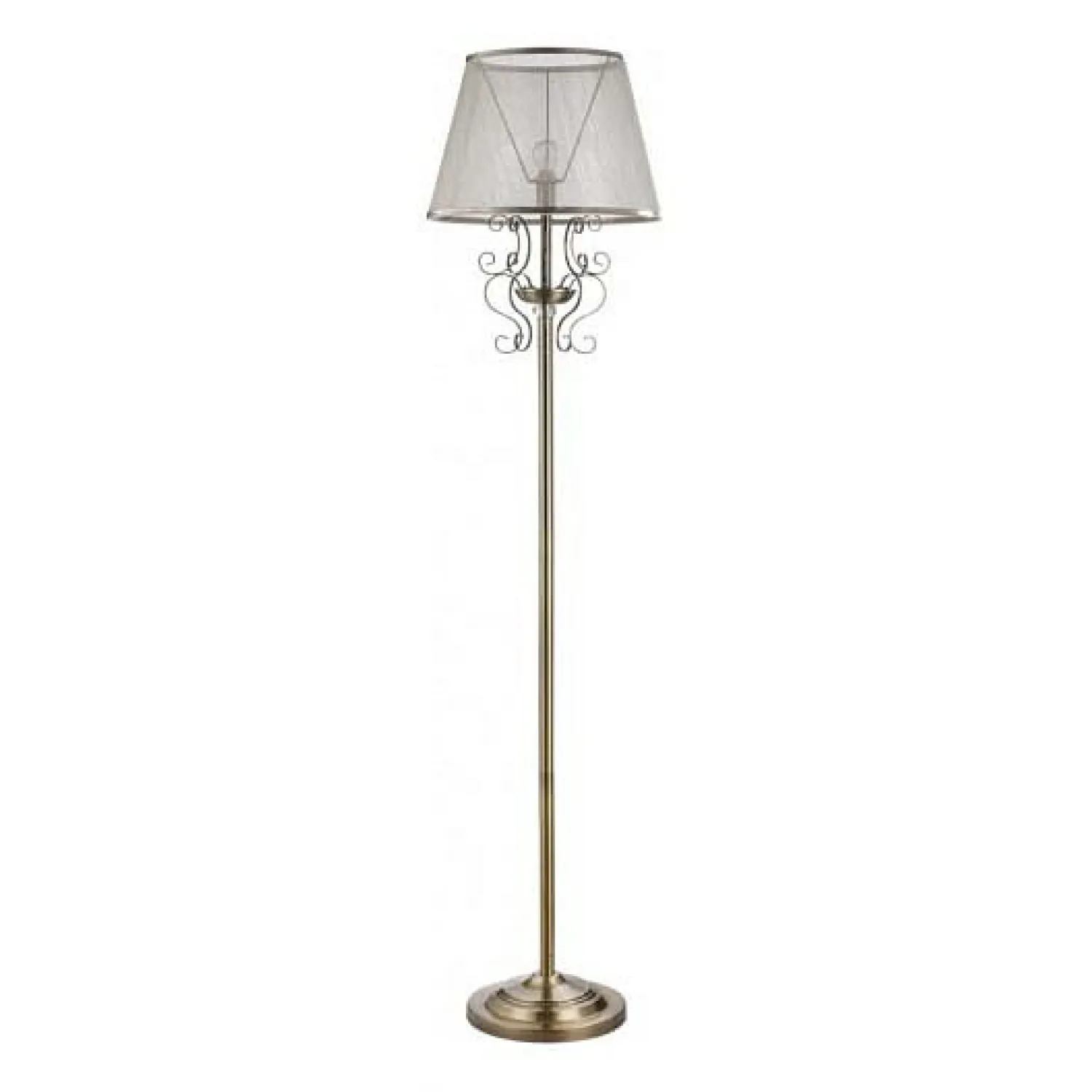 Создайте уютное освещение в своем доме с помощью этого изящного торшера. Его металлическое основание и абажур из ткани придают ему изысканный вид, а бронзовая отделка добавляет шарма и роскоши.