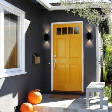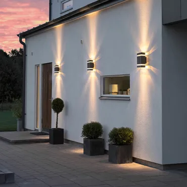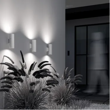 Настенные уличные светильники предназначены специально для подсветки фасадов жилых домов, торговых центров и других зданий. Модели позволяют создавать направленное освещение теплых или холодных оттенков в зависимости от типа ламп.